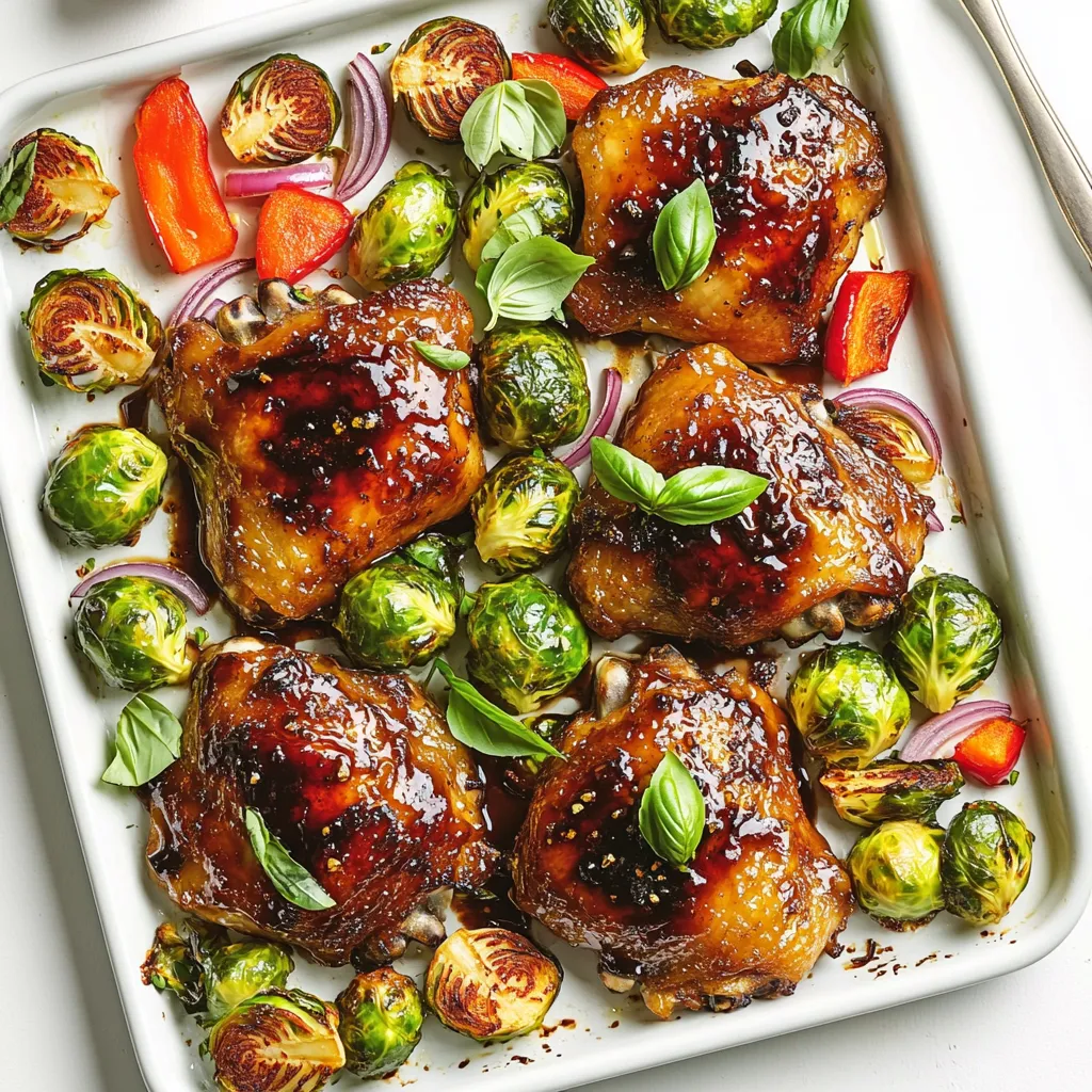 If you don’t have balsamic vinegar, red wine vinegar works well too. Honey can be swapped for maple syrup for a different sweetness. You can use any chicken part, but thighs stay moist. For veggies, feel free to use carrots or zucchini instead of Brussels sprouts.