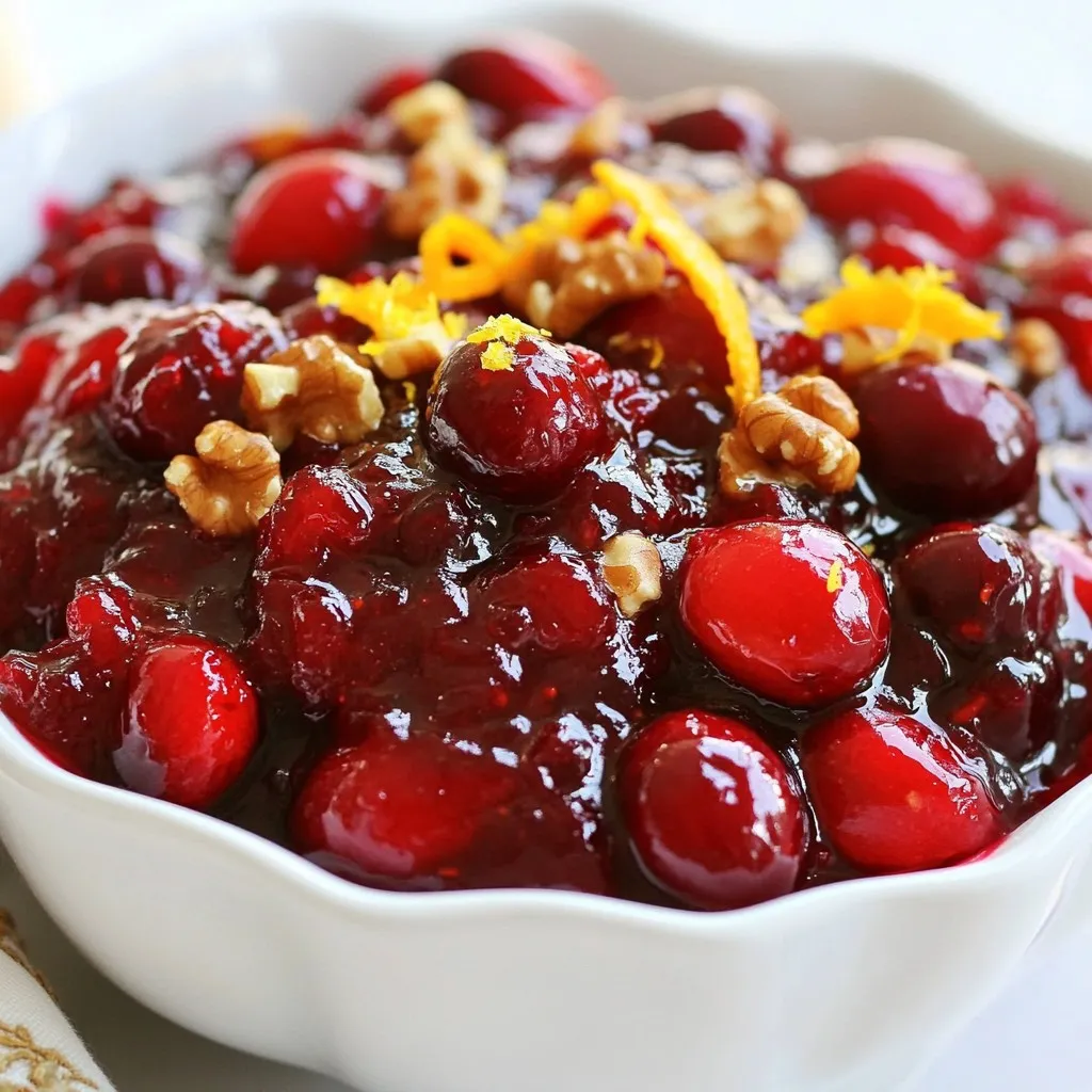 Serve your cranberry sauce in a beautiful bowl. A sprinkle of chopped walnuts on top adds texture. For extra color, garnish with orange slices or mint leaves. This makes your dish look festive and inviting. If you have guests, let them serve it themselves. Offer it alongside other sides for a buffet-style meal. This allows everyone to enjoy your tasty cranberry sauce their way!