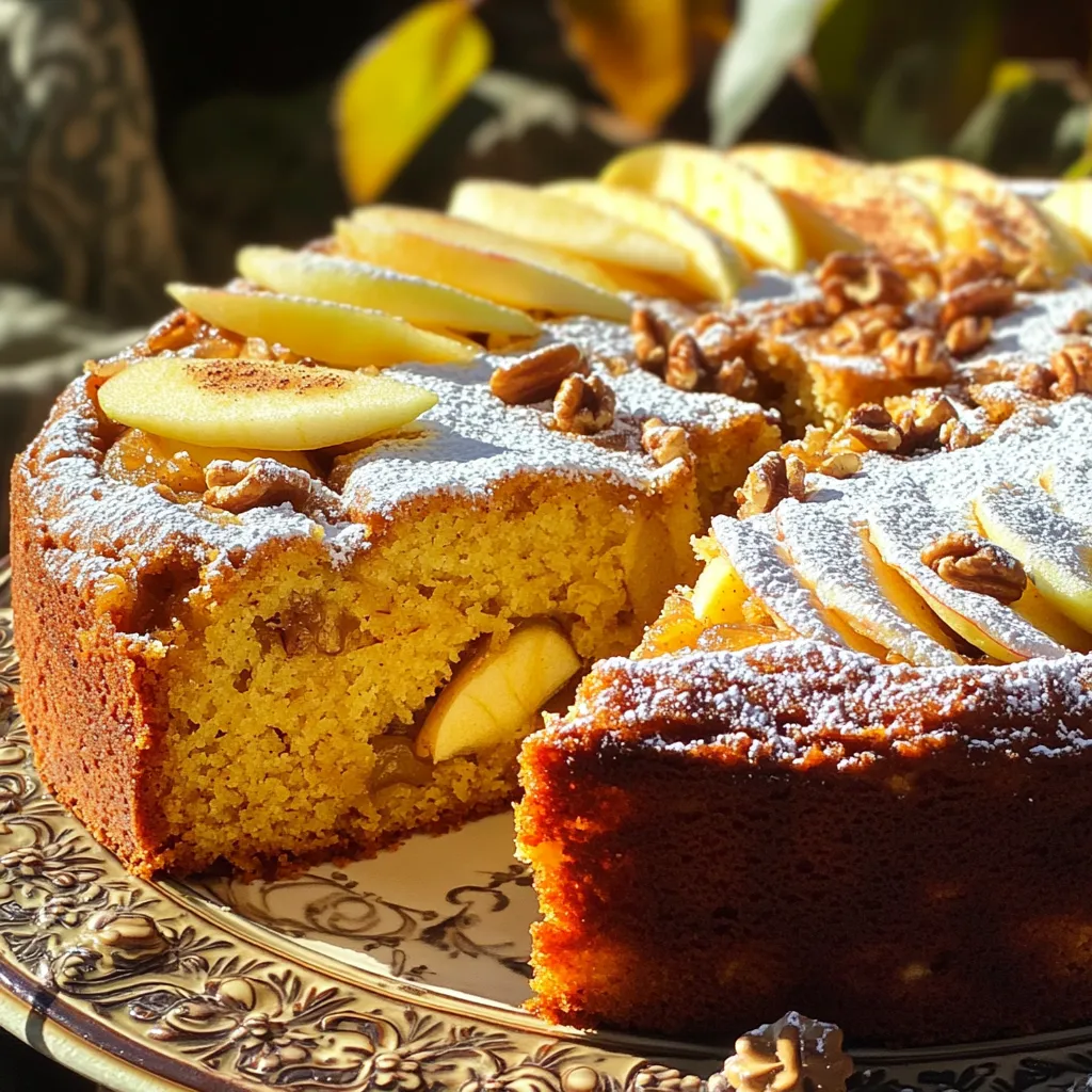 Granulated sugar sweetens the cake and helps it rise. Eggs bind everything together, adding moisture. The flour gives structure. Baking powder and baking soda help the cake rise. Cinnamon and nutmeg add warmth and spice, perfect for a cozy dessert.