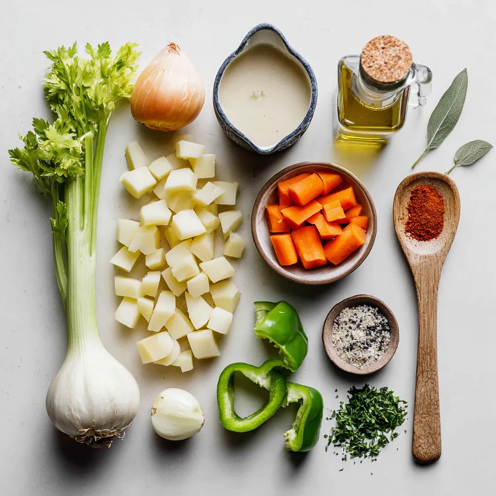 To make this tasty Cajun Potato Chowder, gather these simple ingredients: - 4 medium potatoes, peeled and diced - 1 onion, chopped - 2 cloves garlic, minced - 1 green bell pepper, chopped - 1 celery stalk, chopped - 2 carrots, diced - 4 cups vegetable broth - 1 cup whole milk (or coconut milk for a dairy-free version) - 1 tablespoon Cajun seasoning - 1 teaspoon smoked paprika - 1 bay leaf - 2 tablespoons olive oil - Salt and pepper to taste - Fresh parsley, chopped (for garnish) These ingredients create a rich, warm chowder. The potatoes add heartiness, while the Cajun seasoning brings a kick. You can easily adapt this recipe. If you want a vegan version, swap whole milk for coconut milk. For gluten-free options, check the vegetable broth label. You can also replace the green bell pepper with red or yellow for a sweeter taste. Using fresh ingredients makes a big difference. Fresh potatoes, onions, and peppers enhance the flavor and texture of your chowder. They also add color and nutrients. Always choose the best quality you can find for the most delicious results. Fresh herbs, like parsley, can brighten the chowder and make it more appealing. Enjoy the process of picking and preparing these ingredients! {{ingredient_image_1}} Start by gathering all your ingredients. This makes cooking easier. You will need: - 4 medium potatoes, peeled and diced - 1 onion, chopped - 2 cloves garlic, minced - 1 green bell pepper, chopped - 1 celery stalk, chopped - 2 carrots, diced - 4 cups vegetable broth - 1 cup whole milk (or coconut milk for a dairy-free version) - 1 tablespoon Cajun seasoning - 1 teaspoon smoked paprika - 1 bay leaf - 2 tablespoons olive oil - Salt and pepper to taste - Fresh parsley, chopped (for garnish) Chop the veggies into small pieces. This helps them cook evenly. Peel and dice the potatoes into bite-sized chunks. Heat the olive oil in a large pot over medium heat. Add the chopped onion and bell pepper. Sauté for about 5 minutes until they soften. Stir in the minced garlic, celery, and carrots. Cook for another 3-4 minutes until the aromas fill your kitchen. Next, add the diced potatoes, vegetable broth, bay leaf, Cajun seasoning, and smoked paprika. Bring everything to a boil. Once boiling, reduce the heat to low, cover the pot, and let it simmer for 20-25 minutes. Check if the potatoes are tender. After simmering, remove the bay leaf. Here comes the fun part! Use an immersion blender to blend the chowder until it is smooth. If you prefer some texture, leave it chunky. Finally, stir in the milk or coconut milk. Adjust the seasoning with salt and pepper. Let it heat through for another 5 minutes. Your chowder is now ready to serve! Using an immersion blender is easy and fun. Here are some tips: - Make sure the blender is fully submerged before blending. This helps avoid splashes. - Blend in short bursts. This gives you more control over the texture. - If you want a chunkier chowder, blend only half of it. This creates a nice mix of smooth and chunky. - Clean the immersion blender right after use. This makes it easier to wash. With these steps, you can create a bowl of flavorful Cajun potato chowder that warms the soul. Enjoy every bite! To make the best Cajun potato chowder, focus on your spices. Use a good Cajun seasoning. Look for one with a blend of paprika, garlic, and herbs. This mix brings warmth and depth to your dish. Smoked paprika adds a lovely, smoky note. You can also add more spice if you like it hot. Try adding cayenne pepper or crushed red pepper for extra heat. Don’t forget fresh parsley for garnish. It brightens the flavor and looks nice. Timing is key for a great chowder. Sauté the onions and bell peppers first. This helps build a strong base flavor. After adding the garlic and other veggies, cook them until soft. Then, when you add the potatoes and broth, bring it to a boil. Lower the heat and cover the pot. Let it simmer for 20-25 minutes. This allows the potatoes to soften and soak up flavors. Blend the chowder right before serving. This keeps it fresh and warm. One common mistake is not cooking the veggies long enough. If they’re not soft, the chowder will lack flavor. Another mistake is skipping the bay leaf. It adds a subtle depth that enhances the dish. Don’t rush the blending process. If you blend too much, the chowder can turn too smooth. I like to blend half for creaminess and leave some chunks for texture. Lastly, always taste before serving. Adjust the salt and pepper to your liking. This ensures a well-seasoned chowder. Pro Tips Use Fresh Ingredients: The flavor of your chowder will be significantly enhanced by using fresh, seasonal vegetables. Try to source local produce when possible. Adjust the Spice Level: If you prefer a milder chowder, start with half the amount of Cajun seasoning and gradually add more to taste as it simmers. Blend for Creaminess: For a creamier texture, blend more of the chowder. If you enjoy a chunkier consistency, blend only half of it. Garnish for Presentation: A sprinkle of fresh parsley or a drizzle of olive oil on top before serving can elevate the dish visually and enhance the flavor profile. {{image_2}} You can easily add protein to your chowder. Shrimp and chicken work well. For shrimp, use about one pound, peeled and deveined. Add it during the last five minutes of cooking. The shrimp will cook quickly and add a nice flavor. If you choose chicken, use about two cups of cooked, shredded chicken. Stir it in after blending the chowder. This makes the dish heartier and more filling. To make this chowder dairy-free, swap whole milk for coconut milk. This change keeps it creamy while adding a hint of sweetness. You can also use almond milk or oat milk. Just make sure to choose unsweetened options. These alternatives work well and still taste great. Your chowder will remain rich and flavorful without dairy. If you love heat, adjust the spice level to your liking. You can add more Cajun seasoning or extra smoked 
