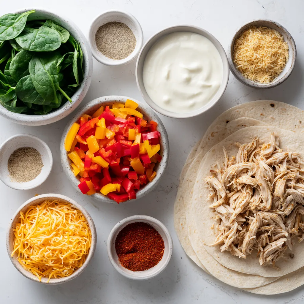 Gather all these ingredients and tools before you start. This prep makes cooking easy and fun. The chicken and bell peppers bring great flavor. The ranch dressing makes it creamy and tasty. Adding spinach or beans boosts nutrition.