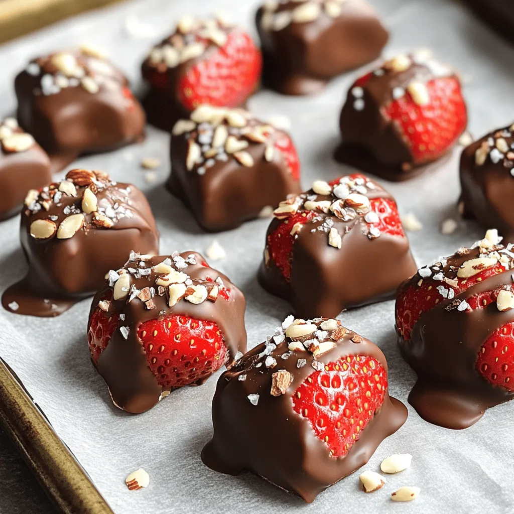 If you like, sprinkle some crushed nuts or a touch of sea salt on top of the chocolate. Return the dipped strawberries to the baking sheet. Freeze them again for 15-20 minutes. This hardens the chocolate, making them ready to eat. Enjoy your delightful treats!