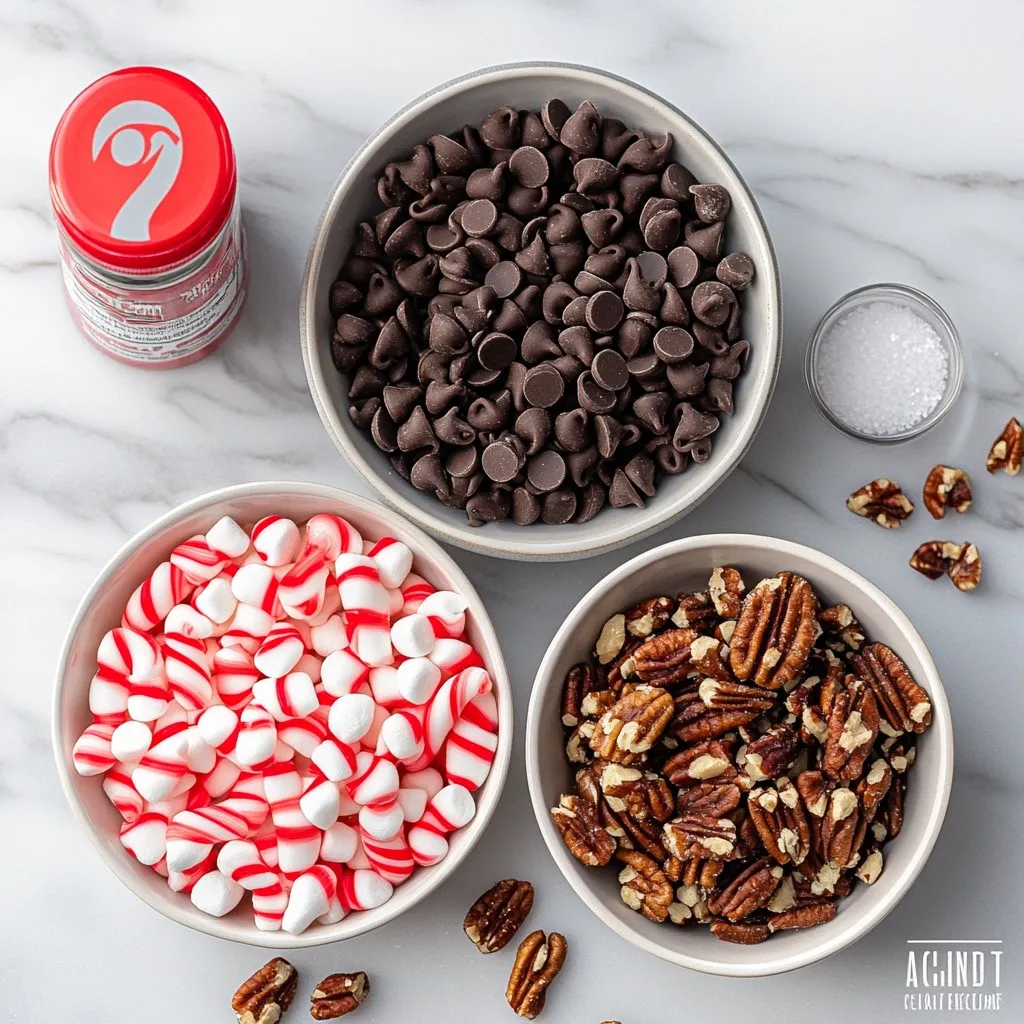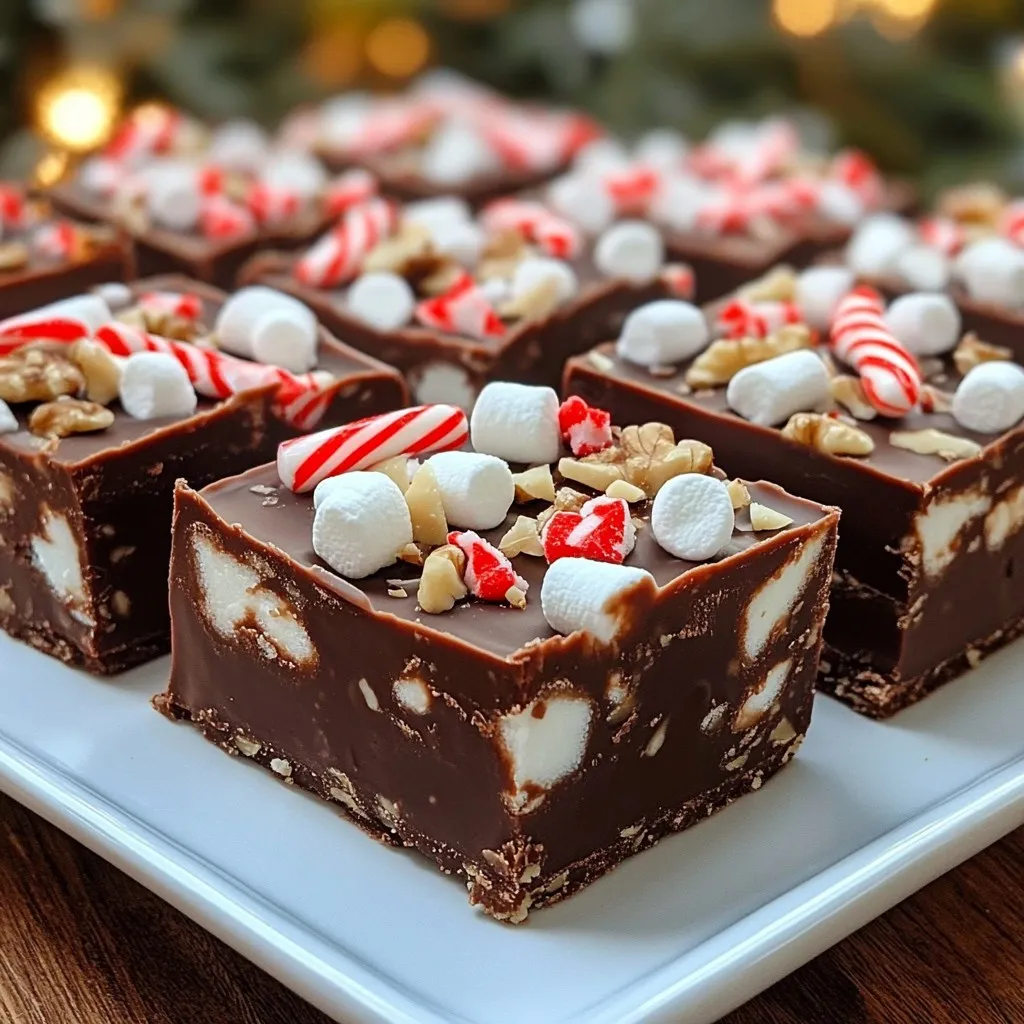 Choose high-quality chocolate chips for the best fudge. Semi-sweet chips melt smoothly and add deep flavor. Use fresh sweetened condensed milk for creaminess. For peppermint candy canes, crush them just before use. This keeps them crunchy. Select fresh nuts like walnuts or pecans for added texture. The mini marshmallows should be soft and fluffy for a great bite. Quality ingredients make a big difference in taste!