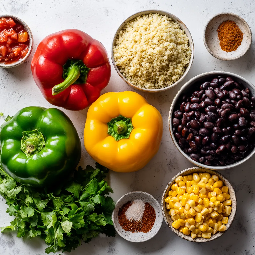 - 4 large bell peppers (any color) - 1 cup quinoa, rinsed - 2 cups vegetable broth - 1 can (15 oz) black beans, drained and rinsed - 1 cup corn kernels (fresh, frozen, or canned) - 1 teaspoon cumin - 1 teaspoon smoked paprika - 1 teaspoon garlic powder - ½ teaspoon salt - ½ teaspoon black pepper - 1 cup diced tomatoes (canned or fresh) - 1 cup shredded cheddar cheese (or vegan cheese) - Fresh cilantro leaves for garnish (optional) Using fresh, colorful bell peppers sets the stage for this dish. Choose any color you like. The quinoa serves as a great base and adds protein. Black beans and corn give it heartiness and texture. The diced tomatoes provide moisture and flavor. Don't forget the spices! Cumin, smoked paprika, garlic powder, salt, and pepper bring the dish to life. Cheese on top adds a nice finish and creaminess, while cilantro gives it a fresh touch. - Cheese alternatives (vegan, different types) - Fresh herbs for garnish You can swap the cheddar cheese for any cheese you prefer. Vegan options work well too! Fresh herbs like cilantro, parsley, or chives can add extra flavor and color. Feel free to get creative here based on your taste and dietary needs. {{ingredient_image_1}} Start by cutting the tops off your bell peppers. Remove the seeds and membranes inside. This step helps the flavors soak in. Place the cleaned peppers upright in a baking dish. This keeps them stable while baking. To cook quinoa, rinse it well under cold water. This removes the bitter taste. In a medium pot, combine the rinsed quinoa and vegetable broth. Bring it to a boil, then lower the heat. Cover the pot and let it simmer for about 15 minutes. The quinoa is done when it’s fluffy and the broth is absorbed. Using vegetable broth adds great flavor to your dish. In a large bowl, mix the cooked quinoa with black beans, corn, and diced tomatoes. Add cumin, smoked paprika, garlic powder, salt, and pepper. Stir until all ingredients blend well. This filling is tasty and full of nutrients. To fill the peppers, gently spoon the mixture into each one. Pack it down lightly but leave space at the top for cheese. Cover the baking dish with foil. Bake in the preheated oven at 375°F (190°C) for 25 minutes. After that, remove the foil and sprinkle cheese on top. Bake again for 10 more minutes. Check if the peppers are tender and the cheese is melted and bubbly. Let the peppers cool a bit before serving. Enjoy your colorful, flavorful feast! To make the filling pop, adjust your spices to match your taste. You can add more cumin for warmth or more garlic powder for depth. Taste as you go. Ensure the texture is just right. The filling should be moist but not soggy. Use cooked quinoa as your base. It adds a nice chewiness. Make sure to mix in the black beans and corn well. This helps every bite burst with flavor. Serve stuffed peppers with a side salad or some crusty bread. A dollop of sour cream or avocado crema works great too. For a fun twist, drizzle a bit of salsa on top. When it comes to presentation, use a colorful plate to make the dish pop. Garnish with fresh cilantro leaves for a bright touch. This not only looks nice but adds fresh flavor. One common mistake is overcooking the peppers. They should be tender but still hold their shape. If they get too soft, the filling can spill out. Another mistake is skipping the resting time after baking. Let the peppers sit for a few minutes. This helps the filling set and makes serving easier. The flavors also meld together better when you give them a moment to rest. Pro Tips Use Colorful Peppers: Different colored bell peppers not only enhance the visual appeal of the dish but also offer slightly different flavors and nutritional benefits. Customize Your Filling: Feel free to add other ingredients like diced zucchini, mushrooms, or ground meat to the filling for added flavor and texture. Serve with Salsa: A side of fresh salsa or avocado can elevate the dish, adding freshness and a burst of flavor. Make Ahead: These stuffed peppers can be prepared a day in advance. Assemble and refrigerate them, then bake when you're ready to serve. {{image_2}} You can switch up the protein in stuffed peppers easily. Ground meat like beef, turkey, or chicken works well. Just cook the meat before adding it to the filling. If you prefer plant-based options, try using tofu. Crumble firm tofu and sauté it with spices for a tasty mix. This choice gives you a great vegetarian meal. Quinoa is a great base, but you can try other grains, too. Rice is a simple swap; just cook it as you would quinoa. Farro and barley are other hearty options. If you need gluten-free choices, use rice or quinoa. Both keep the meal light and tasty. You can add a variety of veggies to your filling for extra taste. Zucchini, mushrooms, or spinach blend well. Just dice them small and mix them in. For spice lovers, adjust the heat by adding jalapeños or hot sauce. These changes make each dish unique and suit your personal taste. To store leftovers, let the stuffed peppers cool down first. Place them in an airtight container. You can keep them in the fridge for up to four days. Make sure to cover them well to avoid drying out. For freezing stuffed peppers, wrap each one in plastic wrap. Then, place them in a freezer-safe bag or container. This helps keep them fresh. You can freeze them for up to three months. When you are ready to eat, take them out and thaw in the fridge overnight. To reheat, preheat your oven to 375°F (190°C) and bake for about 25 minutes. If they are still cold in the center, add a few more minutes. Enjoy your delicious meal! Yes, you can make stuffed peppers ahead of time. This saves time on busy days. Here are some tips for meal prep: - Prepare the filling a day before. Store it in the fridge. - Stuff the peppers and keep them in the fridge for up to 24 hours. - You can also freeze stuffed peppers. Wrap them well and store them. The cooking time for stuffed peppers varies by method: - Oven: Bak