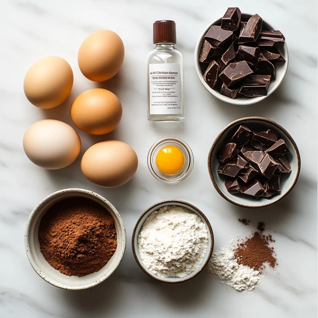 In a large mixing bowl, beat 4 large eggs and 1 cup of granulated sugar. You want this mixture to become thick and pale, which takes about 5 minutes. Then, add in 1 teaspoon of vanilla extract and mix it in gently. In a separate bowl, sift together 1/3 cup of all-purpose flour, 1/3 cup of unsweetened cocoa powder, 1/2 teaspoon of baking powder, and 1/4 teaspoon of salt. Carefully fold this dry mix into the egg mixture. Make sure to keep it light and airy.