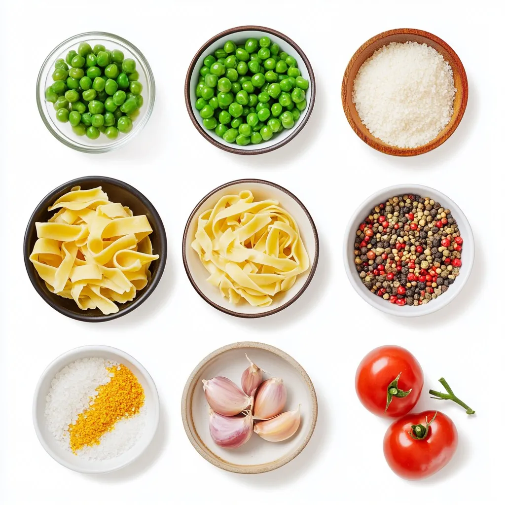 - Add the halved cherry tomatoes and frozen peas, letting them cook in the sauce for another 2-3 minutes.