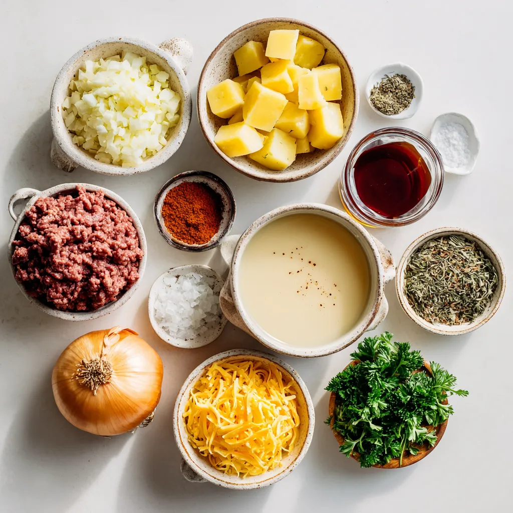 These simple ingredients come together to create a warm, filling meal. Each item plays a key role. The ground beef provides protein, while the potatoes add heartiness. The heavy cream makes the dish rich and creamy. The spices bring flavor and warmth.