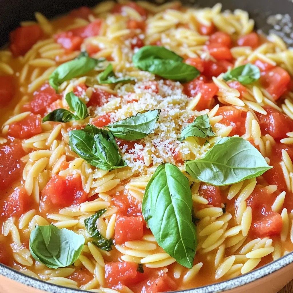 For a beautiful presentation, serve the orzo in shallow bowls. Add a few whole basil leaves on top for a fresh look. This makes your dish feel special and inviting.