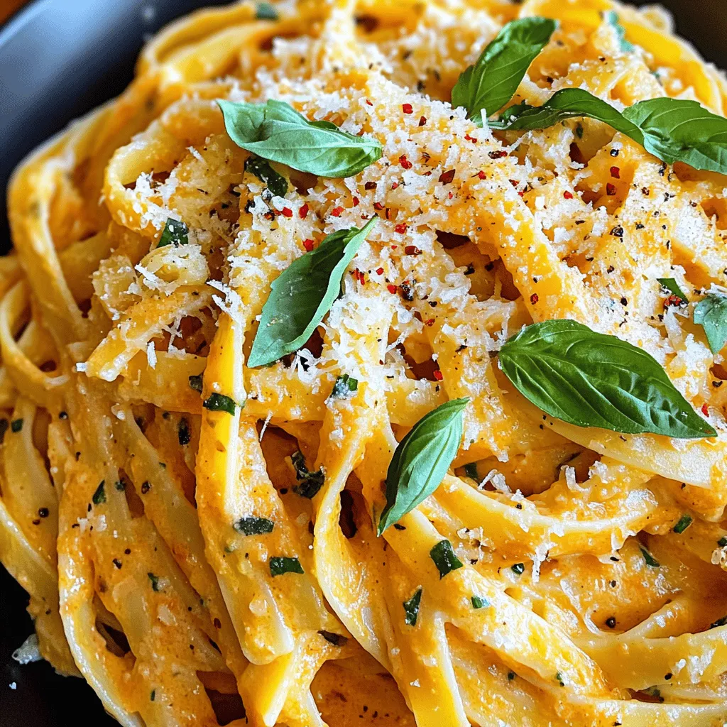 - 300g pasta (fettuccine or penne) - 2 tablespoons olive oil - 4 cloves garlic, minced - 1 can (400g) crushed tomatoes - 1 cup heavy cream - 1 teaspoon dried basil - 1 teaspoon dried oregano - Salt and pepper to taste - ½ cup grated Parmesan cheese - Fresh basil leaves for garnish - Optional: Red pepper flakes for heat When I make creamy tomato garlic pasta, I focus on fresh ingredients. The pasta is the star here. I like fettuccine or penne because they hold the sauce well. You’ll need 300 grams of your chosen pasta. Next, we need olive oil for cooking. Just two tablespoons will do. It adds flavor and helps the garlic cook just right. Speaking of garlic, four cloves, minced, bring a great aroma. Our sauce begins with one can of crushed tomatoes, about 400 grams. This gives the pasta its rich base. We’ll also add one cup of heavy cream. This cream makes the dish creamy and delicious. We must not forget our seasonings. One teaspoon of dried basil and one teaspoon of dried oregano add depth. Salt and pepper help balance the flavors. I like to sprinkle in some grated Parmesan cheese—half a cup adds a lovely finish. For garnish, fresh basil leaves brighten the dish. If you want a kick, red pepper flakes are a great choice. They add just the right amount of heat. 1. Boil water in a large pot. Add salt to the water. 2. Cook pasta according to the package instructions until al dente. 3. Drain the pasta and reserve 1 cup of pasta water for later. 1. Sauté minced garlic in 2 tablespoons of olive oil over medium heat. Cook for about 1 minute. 2. Add crushed tomatoes to the skillet. Stir well and let it simmer for about 5 minutes. 3. Stir in heavy cream along with 1 teaspoon of dried basil and 1 teaspoon of dried oregano. Let it simmer for an additional 5 minutes. 4. Season the sauce with salt and pepper. If you want heat, add red pepper flakes to taste. 1. Toss the cooked pasta into the sauce. Mix it well to coat. 2. Adjust the thickness of the sauce using reserved pasta water. Add a little at a time. 3. Add grated Parmesan cheese and mix until it melts into the sauce. This pasta dish is creamy and bursting with flavor. It comes together quickly and easily, making it perfect for any night of the week. - Choosing the right pasta type: I like using fettuccine or penne. They hold the creamy sauce well. You can even use whole wheat pasta for added nutrients. Just make sure to cook it al dente for the best texture. - Ensuring garlic doesn't burn: When sautéing garlic, keep your heat at medium. Watch it closely. Garlic burns quickly and turns bitter. Cook it just until fragrant, about one minute. This brings out its sweet flavor. - Adding more vegetables: You can boost nutrition by adding veggies. Spinach adds a nice green touch. Bell peppers add sweetness and color. Just sauté them with the garlic for a tasty mix. - Incorporating protein: Want to make it heartier? Add cooked chicken or shrimp. They pair well with the creamy sauce. Make sure to cook them separately, then toss them in at the end. - Best side dishes: Fresh salad works great with creamy tomato garlic pasta. Garlic bread is another favorite. Both add texture and balance to your meal. - Wine pairings: A light red wine, like Pinot Noir, complements the flavors. If you prefer white, try a Chardonnay. These wines enhance the creamy sauce and tomato notes, making dinner special. {{image_2}} You can make this dish vegan easily. Replace the heavy cream with coconut milk or cashew cream. Both give a rich and creamy texture. Instead of Parmesan cheese, use nutritional yeast. It has a cheesy flavor and adds nutrients. If you need a gluten-free choice, there are great pasta substitutes. Look for gluten-free penne or fettuccine made from rice or corn. They cook differently, so adjust the cooking time. Always check the package for exact times to get perfect pasta. For those who love heat, spice it up! Add more red pepper flakes to the sauce. You can also mix in spicy sausage or chorizo for extra flavor. This will give your creamy tomato garlic pasta a nice kick. To store leftover creamy tomato garlic pasta, place it in an airtight container. Make sure to let it cool before sealing. This helps keep it fresh. It can stay in the fridge for up to three days. When you are ready to eat, simply reheat it on the stove or in the microwave. Add a splash of water or cream if it seems too thick. If you want to freeze creamy tomato garlic pasta, use a freezer-safe container. Leave some space at the top, as the pasta will expand. It can be stored in the freezer for up to three months. To thaw, move it to the fridge for a few hours or overnight. You can also thaw it in the microwave for a quick option. To reheat, warm it in a skillet over low heat. Stir often to avoid burning. Adding a bit of cream or pasta water will help bring back its creamy texture. Enjoy your pasta later with ease! Yes, you can use fresh tomatoes. For best results, use ripe ones. You will need about 6-8 medium tomatoes. First, blanch them in boiling water for about 30 seconds. Then, peel off the skins easily. Chop the tomatoes and cook them down in the skillet. This process will help release their juices. Make sure to cook them long enough to get that rich flavor. To make this dish lower in calories, reduce the cream. You can use half a cup of low-fat milk instead. This will help keep the sauce creamy without too many calories. Additionally, cut back on the cheese. Using only a quarter cup of Parmesan still adds flavor without too much fat. You can also skip the optional red pepper flakes if you prefer a milder taste. Yes, you can prepare this pasta dish ahead of time. Cook the pasta and sauce separately. Store each in airtight containers in the fridge. You can keep them for up to three days. When ready to eat, reheat the pasta and sauce together. If the sauce is too thick, add a bit of reserved pasta water. This keeps it creamy and fresh. This blog post explored how to make creamy toma