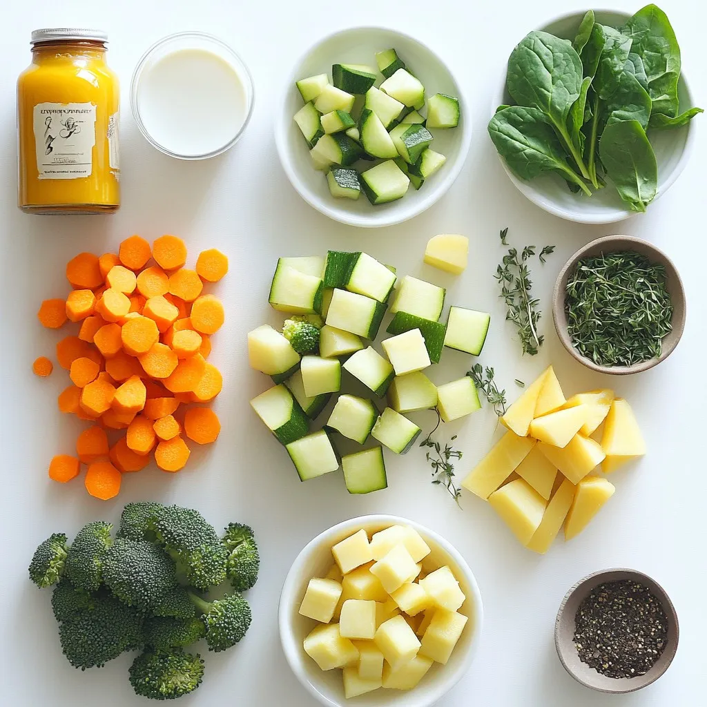 You need fresh vegetables for this soup. Carrots add sweetness, and celery gives a nice crunch. Potatoes add creaminess, while broccoli and zucchini bring color and nutrients. Don’t forget the spinach; it packs a healthy punch.