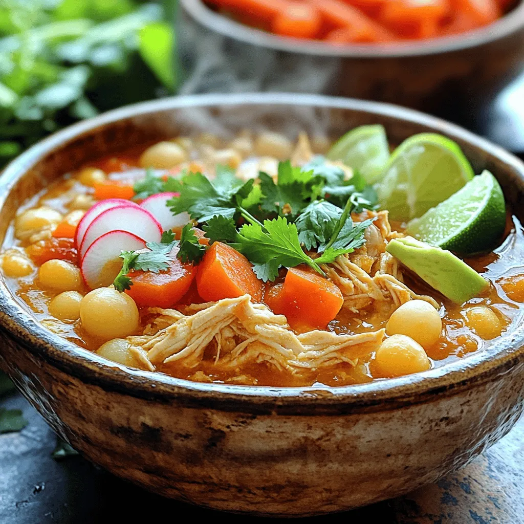 To make a tasty crockpot pozole, you need the following main ingredients: - 2 pounds boneless, skinless chicken thighs - 1 can (15 oz) hominy, drained and rinsed - 1 large onion, diced - 4 cloves garlic, minced - 2 teaspoons ground cumin - 2 teaspoons dried oregano - 1 tablespoon chipotle powder (adjust for spice preference) - 6 cups chicken broth - 2 medium carrots, sliced - 1 can (14.5 oz) diced tomatoes (with green chilies for added flavor) - Salt and pepper to taste These ingredients work together to create a rich, flavorful soup. The chicken adds protein while the hominy gives it that classic pozole texture. Toppings can add great flavor and texture. Here are some fun options to try: - Fresh cilantro, chopped (for garnish) - Lime wedges (for serving) - Sliced radishes (for serving, optional) - Avocado slices (for serving, optional) These toppings will brighten up your bowl of pozole and make it even more delicious. If you need to swap some items, here are some easy substitutions: - Use bone-in chicken thighs for more flavor. - Swap out chicken broth for vegetable broth to make it vegetarian. - Use corn instead of hominy if you can't find it. - You can replace chipotle powder with smoked paprika for less heat. These substitutions will keep your pozole tasty while using what you have on hand. Start by gathering all your ingredients. You need two pounds of boneless, skinless chicken thighs. Next, dice one large onion and mince four cloves of garlic. Slice two medium carrots. Get a can of hominy, which is 15 ounces, and drain it. You will also need a can of diced tomatoes, 14.5 ounces, with green chilies for a bit of zing. Lastly, have your spices ready: two teaspoons of ground cumin, two teaspoons of dried oregano, and one tablespoon of chipotle powder. Don’t forget salt and pepper! In your crockpot, layer the chicken thighs, onion, garlic, and sliced carrots. Sprinkle the cumin, oregano, chipotle powder, salt, and pepper evenly over these ingredients. Next, pour in six cups of chicken broth and add the diced tomatoes with their juice. Stir everything together gently. Cover the crockpot and set it to cook on low for 6 to 8 hours or on high for 4 to 5 hours. You want the chicken to be tender enough to shred easily. About 30 minutes before you are ready to serve, stir in the hominy. This allows it to heat through. Once the cooking time is done, use two forks to shred the chicken directly in the crockpot. Mix the shredded chicken well with the broth and veggies. Taste your soup and adjust the seasoning, adding more salt or pepper if you wish. Serve your pozole hot, garnished with fresh cilantro, lime wedges, and optional toppings like sliced radishes and avocado. Enjoy your delicious and comforting soup! To boost the flavor of your Crockpot Pozole, try these tips: - Use fresh spices. Fresh spices give your dish a stronger taste. - Sauté garlic and onion. Sautéing before adding them to the crockpot adds depth. - Add lime juice. Squeeze fresh lime juice just before serving for brightness. - Experiment with toppings. Add avocado, radishes, or extra cilantro for more flavor. These small changes can make your pozole stand out. Here are some common mistakes to keep in mind: - Skipping the seasoning. Always season early and taste as you go. - Not shredding the chicken properly. Shred the chicken well for even flavor. - Using low-quality broth. A good broth enhances the overall taste of your soup. Avoid these missteps to create a delicious dish. Cooking time can vary based on your crockpot's settings: - For low heat. Cook for 6-8 hours for tender chicken. - For high heat. Cook for 4-5 hours, checking for doneness. - Adjusting for busy days. If you're short on time, cook on high. Keep an eye on your pozole to ensure it turns out just right. {{image_2}} You can make a tasty vegetarian pozole by swapping the chicken for vegetables. Use a mix of mushrooms, zucchini, and bell peppers for depth. Instead of chicken broth, use vegetable broth for a rich base. Add extra spices like smoked paprika to get that smoky flavor. If you want to try different proteins, go for pork or beef. Pork shoulder works well and adds a nice richness. If you prefer beef, use chuck roast for tender meat. Just adjust the cooking time as needed. These options keep the dish hearty and filling. To control the spice level, start with less chipotle powder. You can always add more later. If you prefer mild flavors, skip the chipotle entirely. For a spicy kick, toss in some fresh jalapeños or extra chipotle. Always taste before serving to find your perfect heat. To keep your pozole fresh, store it in an airtight container. Let it cool first. Place the container in the fridge. It stays good for about 3 to 4 days. Reheat your pozole on the stove for best results. Use medium heat and stir often. You can also use a microwave. Heat it in short bursts, stirring in between. Make sure it's hot all the way through. You can freeze pozole for later use. Use a freezer-safe container and leave some space at the top. It will stay good for about 3 months. To thaw, place it in the fridge overnight. Reheat as usual when you’re ready to eat. Pozole is a traditional Mexican soup. It is made with hominy, meat, and spices. The hominy gives it a unique texture. You can find pozole in red, green, or white versions. Each type uses different ingredients and flavors. In this recipe, we use chicken for a hearty, comforting meal. Yes, you can use other meats. Pork is a popular choice for pozole. You could also use beef or turkey. Just make sure the meat is tender and flavorful. Adjust cooking times based on the type of meat you choose. You can store leftovers in the fridge for three to four days. Make sure to keep it in an airtight container. If you want to keep it longer, consider freezing it. Pozole can last in the freezer for up to three months. Yes, pozole is gluten-free. The main ingredients are hominy, meat, and broth. Just check any seasoning packe