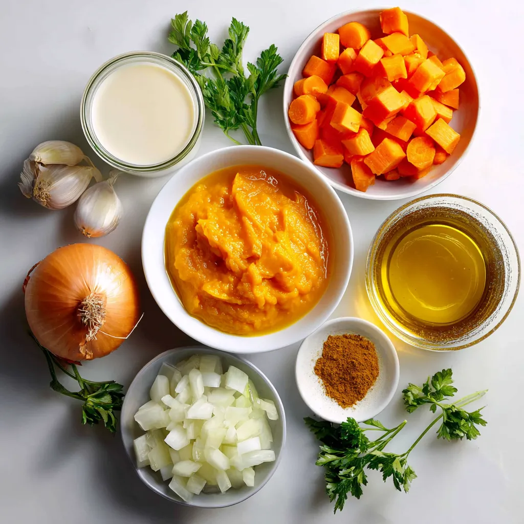 Next, vegetable broth is your base. It gives flavor without being heavy. Ground cumin and nutmeg boost warmth. These spices make the soup cozy and inviting. Coconut milk adds creaminess and a hint of sweetness. It balances the flavors well.