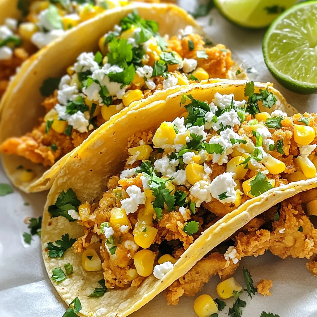 For a spicy kick, use spicy fried chicken. Coat the chicken with a blend of hot sauce and a bit of paprika before frying. This adds heat and flavor. Keep the street corn sauce but add more chili powder. You can even sprinkle some cayenne pepper on top. These tacos pack a punch and will wow your taste buds.