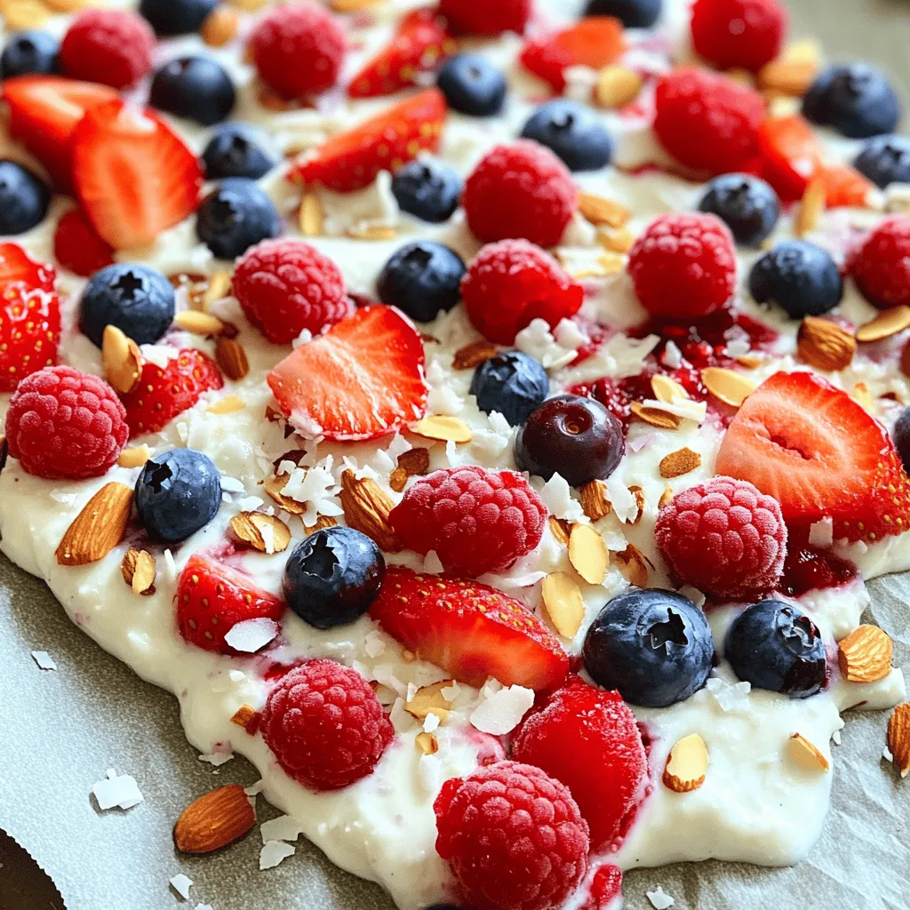 These ingredients form the base of your yogurt bark. Greek yogurt gives it a creamy texture. Honey or maple syrup adds sweetness. A touch of vanilla brings a lovely aroma.