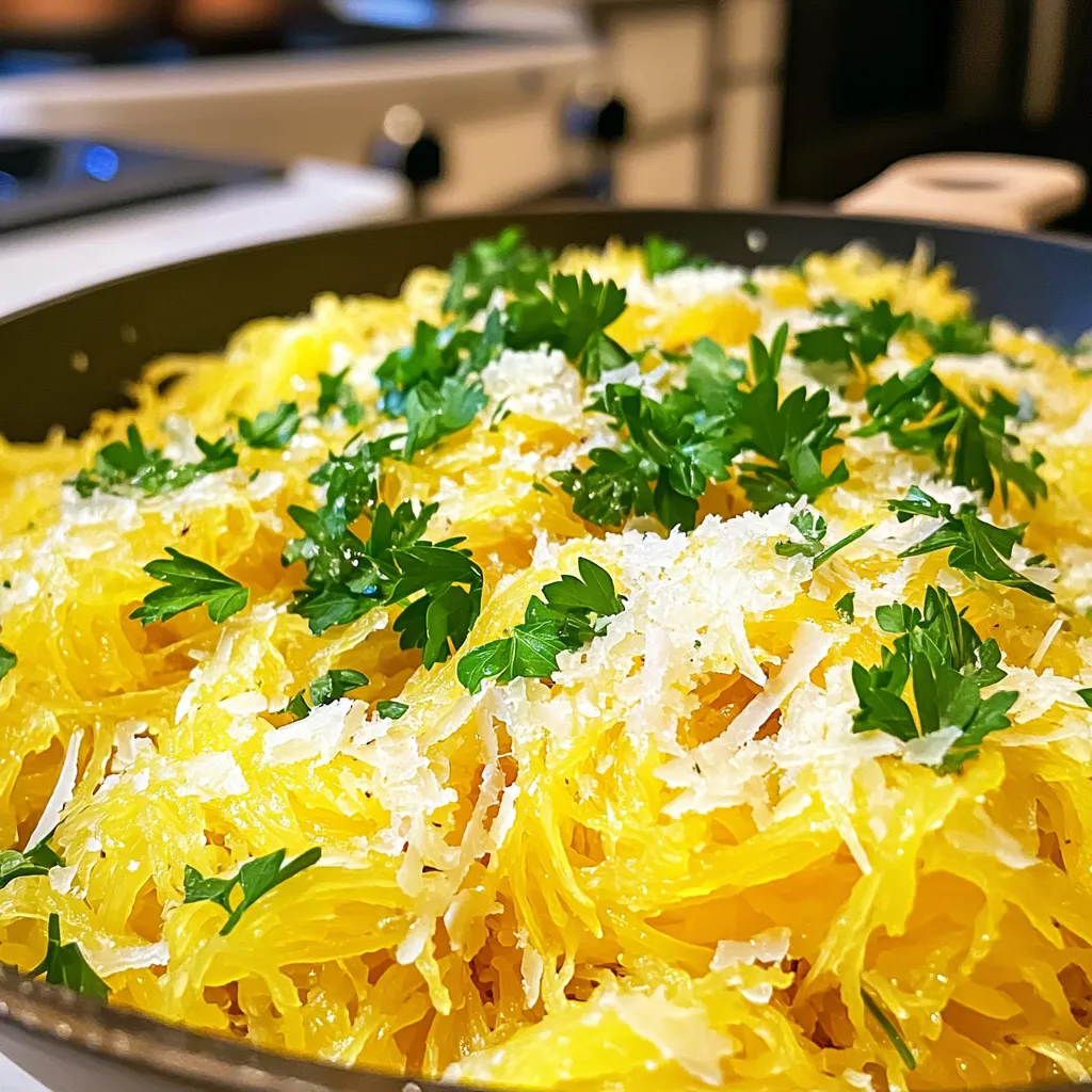 Garlic Parmesan spaghetti squash pairs well with a fresh salad or grilled chicken. For added flavor, top it with crushed red pepper or a squeeze of lemon. You could also try adding sautéed spinach or cherry tomatoes for a burst of color. Serve it warm, garnished with chopped parsley for a nice touch.