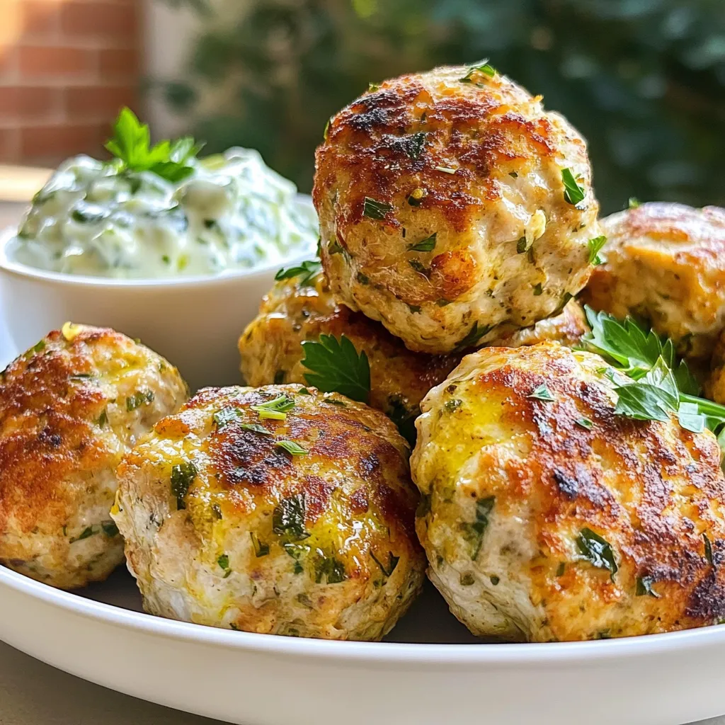 Serve your Greek chicken meatballs with tzatziki sauce. The cool sauce balances the warm meatballs. You can also pair them with a side salad. A Greek salad with tomatoes, cucumbers, and olives works great. If you want a filling meal, serve them with rice or pita bread. Both options soak up the flavors well. Enjoy the delightful mix of textures and tastes!