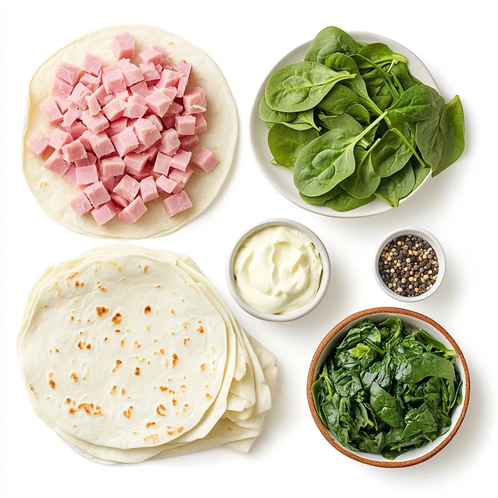 - Ensuring even filling distribution: Spread the cream cheese mixture evenly across each tortilla. This helps the flavors blend well. When you add ham, cheese, and spinach, make sure to place them on one half of the tortilla. This keeps the filling together when you fold it.