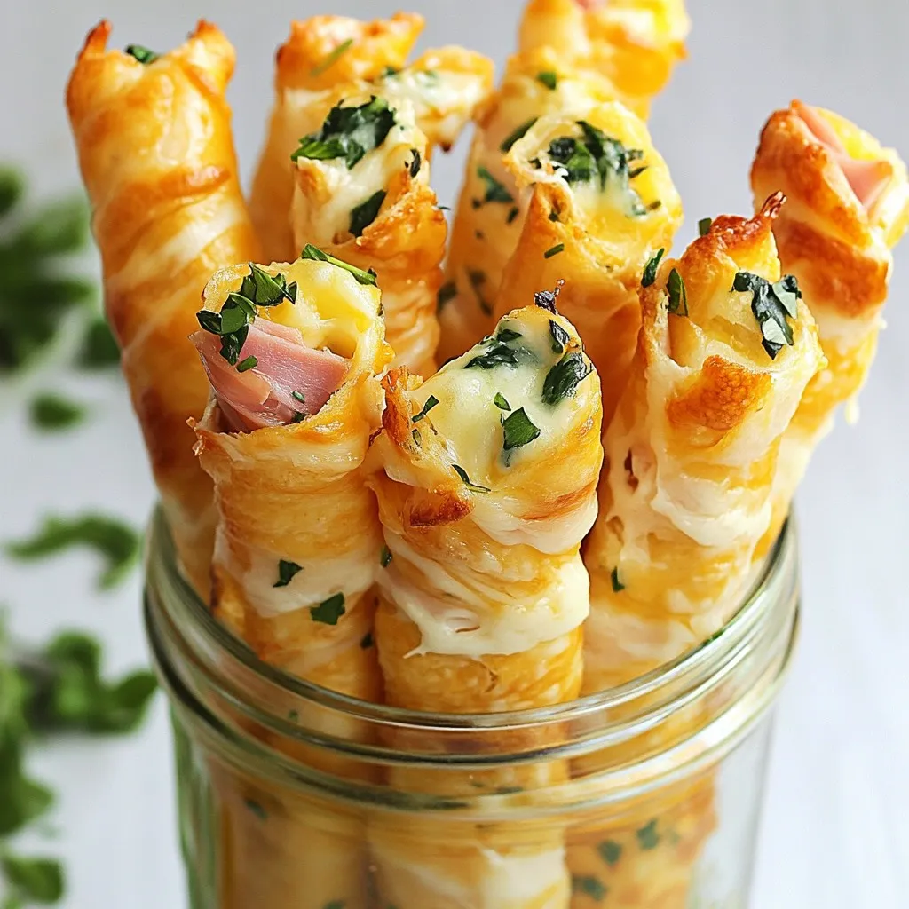 These ingredients create a tasty snack that you can whip up in no time. Each item plays a key role in flavor and texture. For example, the cream cheese acts as a rich base that holds the filling together. The ham brings savory goodness, while the spinach adds a touch of freshness. The mozzarella melts beautifully, creating that gooey, cheesy delight we all love.