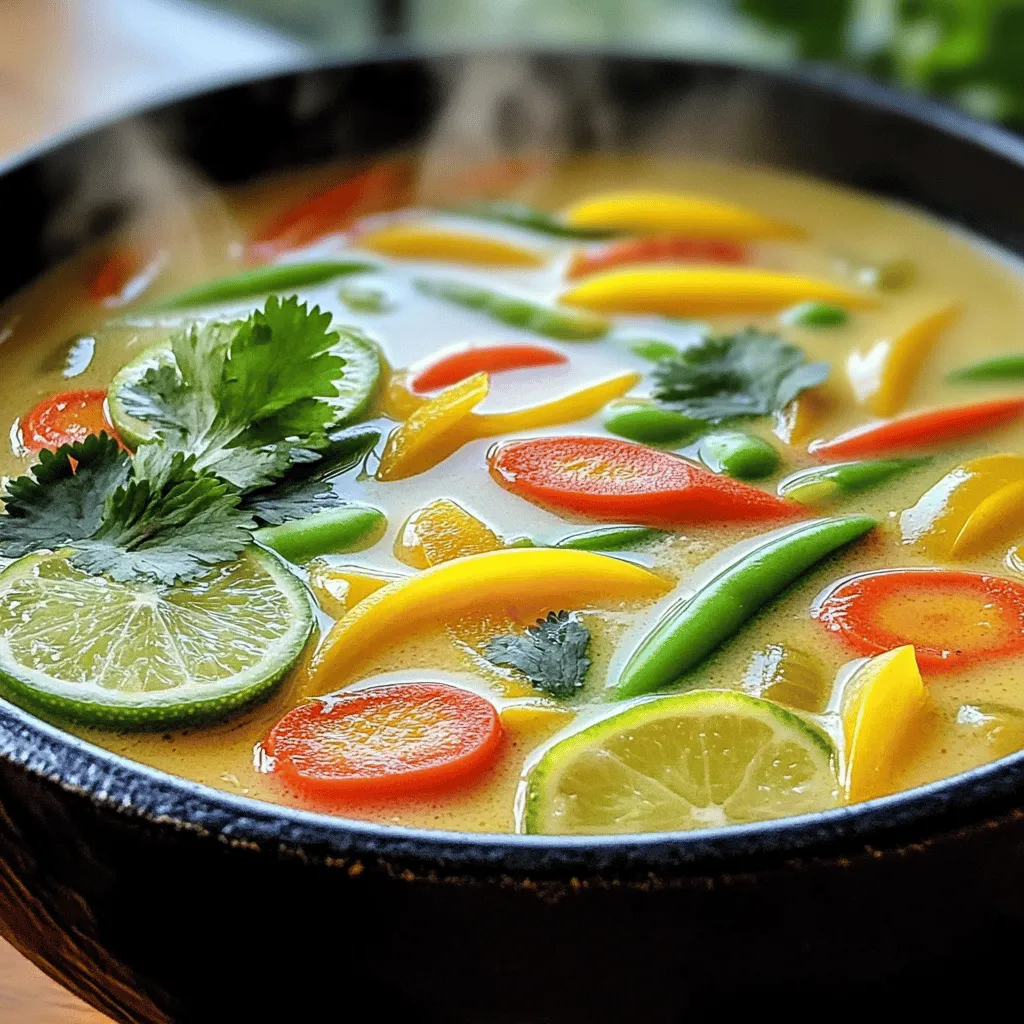 To make your Thai coconut curry soup shine, focus on balancing flavors. Use fresh ingredients for the best taste. Start with coconut oil for a rich base. Sauté the onion until soft; this adds sweetness. The red curry paste is key for depth. Adjust the amount based on your spice level. If you like it spicy, add more! Finish with lime juice for a zesty kick. This brightens the soup and balances the creaminess of coconut milk.