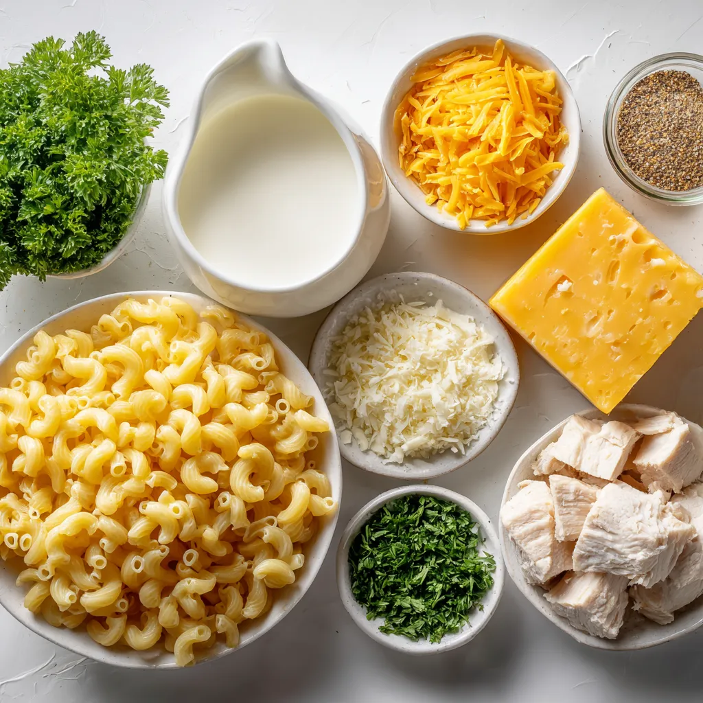 The main ingredients create a rich, creamy dish. Elbow macaroni gives a fun shape. Chicken breasts add protein and flavor. Cheddar and mozzarella mix well for a cheesy base. Cream cheese and milk help make the sauce creamy.