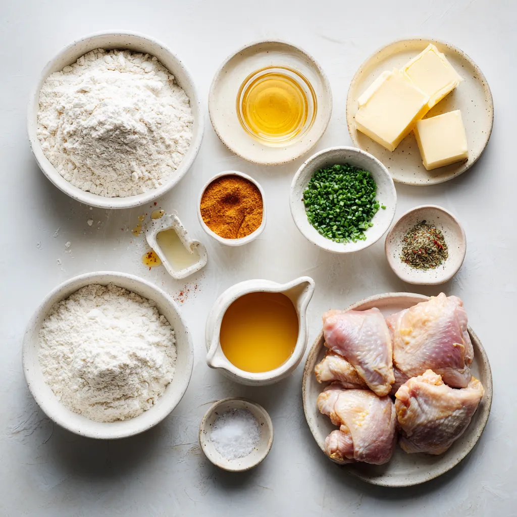 These ingredients create a delightful mix of flavors. The buttermilk makes the biscuits soft and fluffy. The chicken thighs stay juicy and packed with spices, giving each bite a tasty kick. Hot honey adds a sweet heat that balances the savory chicken. Finally, fresh chives add a bright touch.