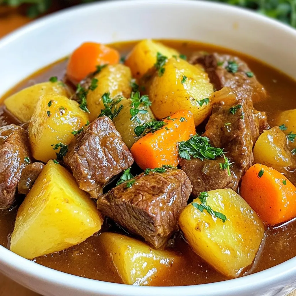 To make this stew in a slow cooker, sear the beef first. Then, place all the ingredients in the slow cooker. Cook on low for 6-8 hours or high for 3-4 hours. This gives the flavors time to blend well. The slow cooker version is easy and still very tasty!