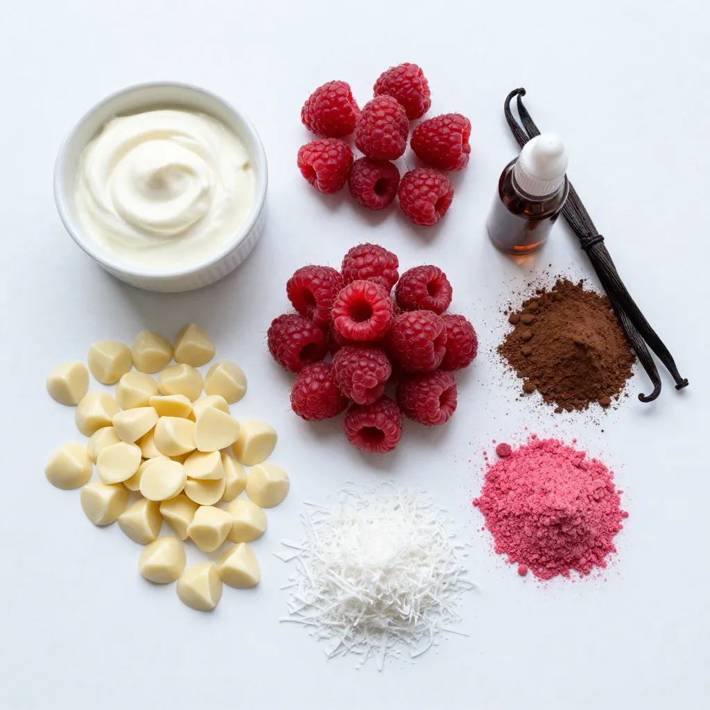 To make my white chocolate raspberry truffles, I focus on the right ingredients. The star of the show is white chocolate chips. They give the truffles their sweet, creamy base.