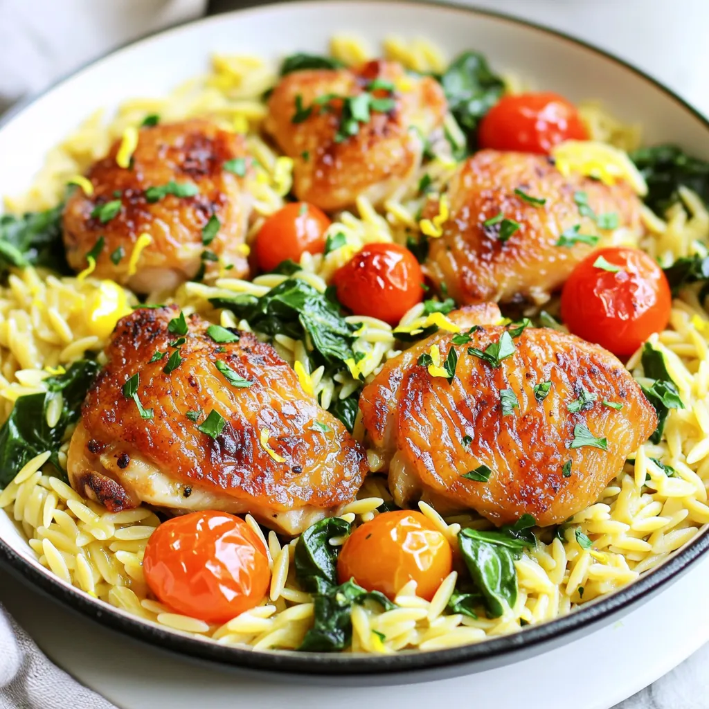 Chicken thighs give this dish a rich flavor. They stay juicy during cooking. Orzo pasta adds a nice texture and absorbs the taste of the broth. Fresh vegetables like garlic and onion boost the aroma. Cherry tomatoes add sweetness, while spinach brings a vibrant green color.