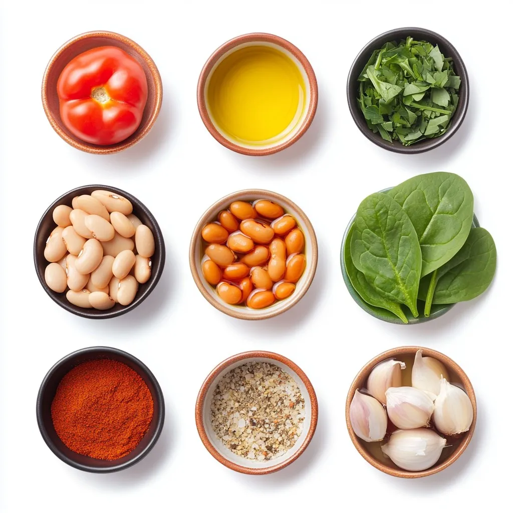 Spices like smoked paprika and cumin add warmth and earthiness. Dried oregano gives a hint of freshness. Diced tomatoes and vegetable broth create a savory base. Spinach adds a bright green color and nutrients.