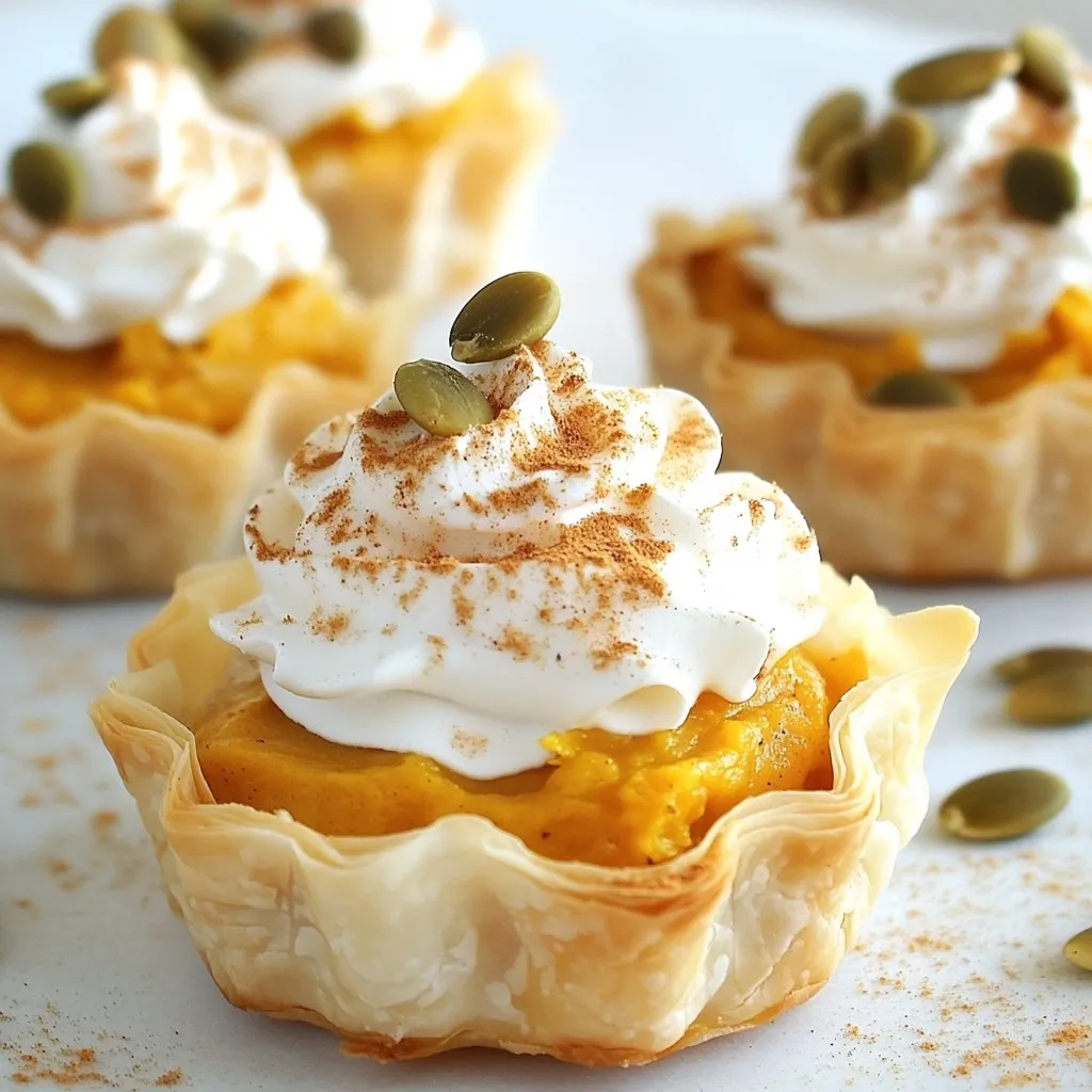 The mini phyllo pastry shells provide a crispy base. You can top your pies with whipped cream for a fluffy finish. Pumpkin seeds add a nice crunch, making each bite even more delightful.