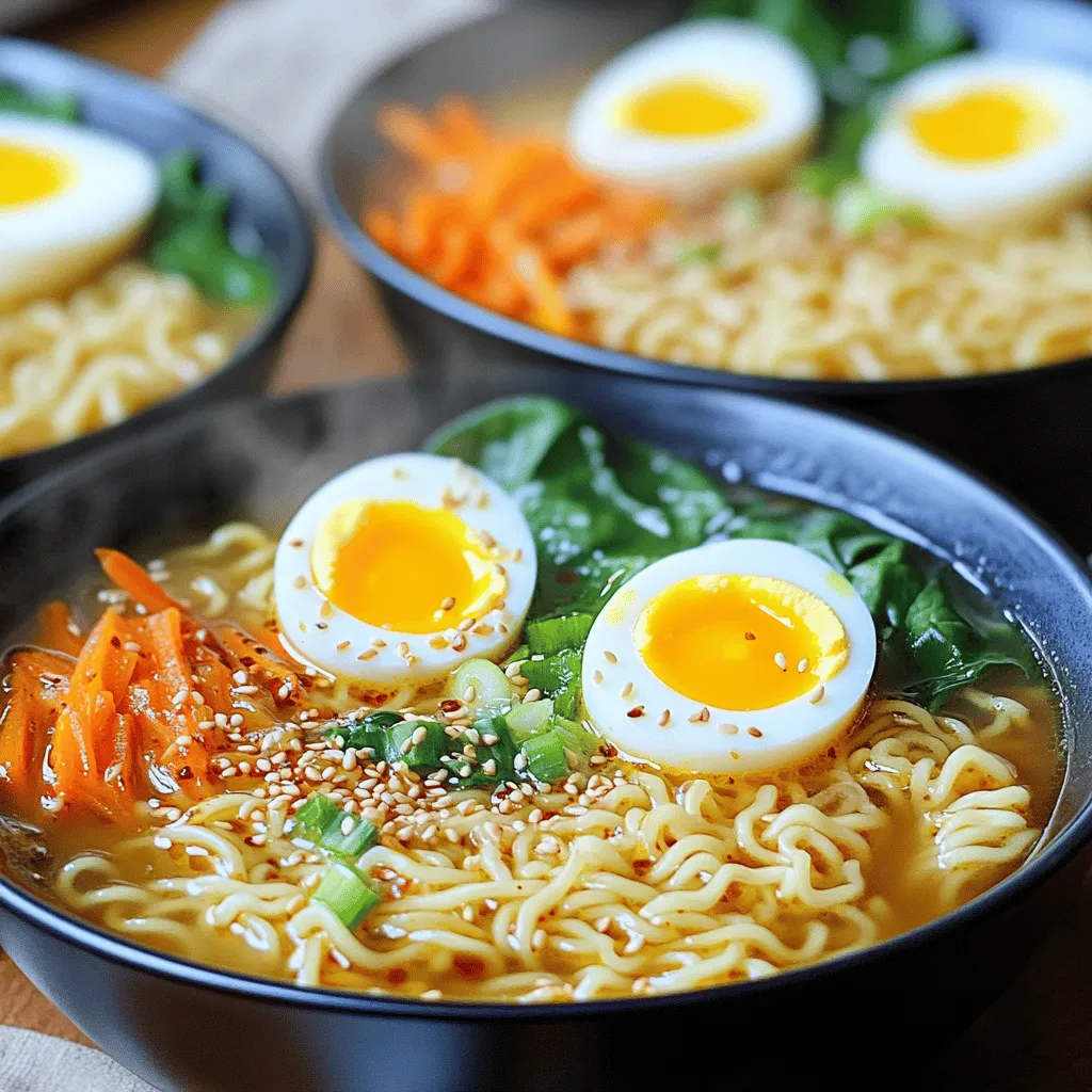 The fresh veggies, like spinach and carrots, bring color and nutrients. If you want extra protein, soft-boiled eggs are a great choice. They add creaminess and richness to the broth. The sesame seeds on top add a nice crunch and look pretty too.