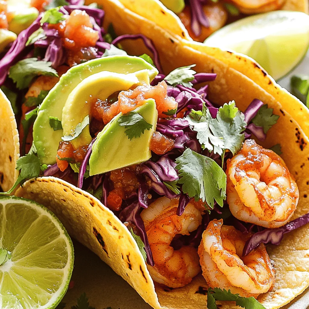 You can prep shrimp and toppings in advance. Cook the shrimp and store them in the fridge for up to two days. Warm the tortillas right before serving. This makes your taco night fast and easy.