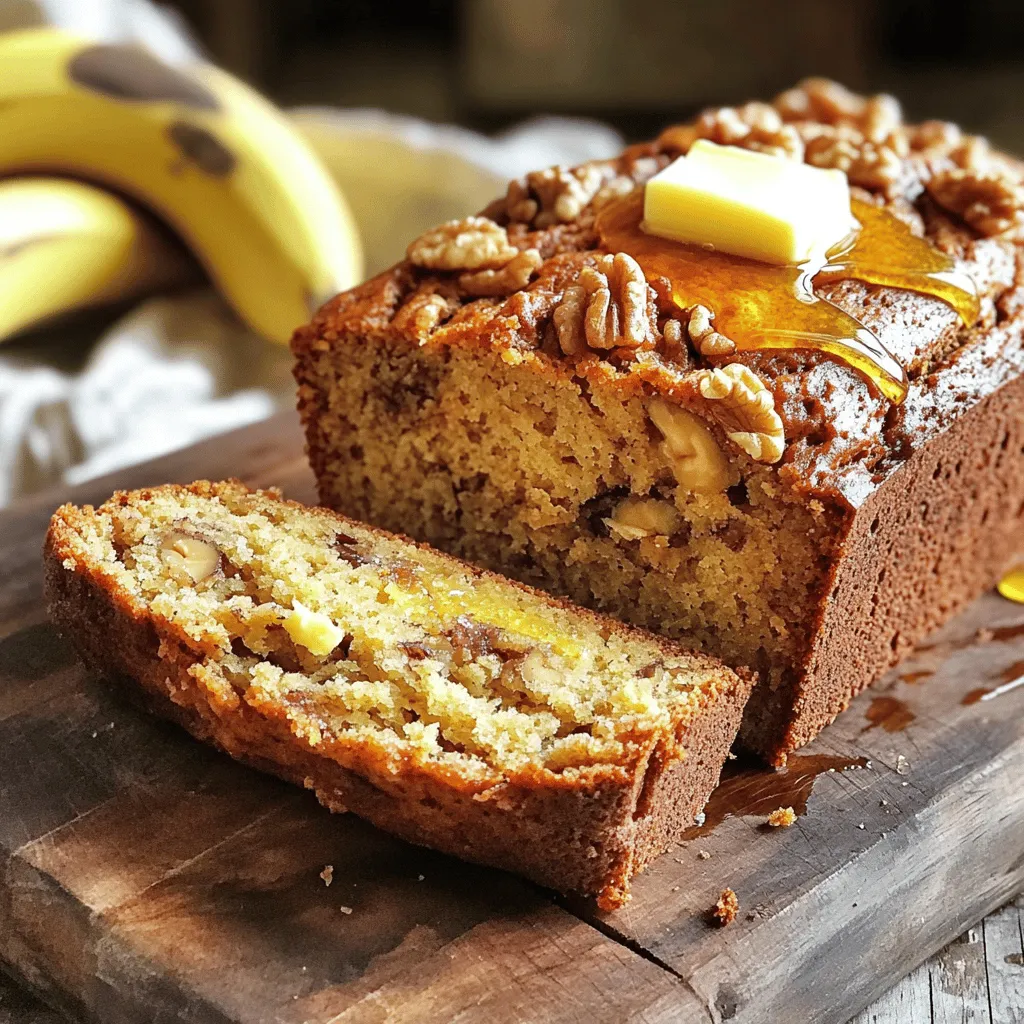 For serving, slice the banana bread and enjoy it warm. Add a pat of butter on top. For a sweet twist, drizzle honey or maple syrup over each slice. It makes the bread even more delightful!