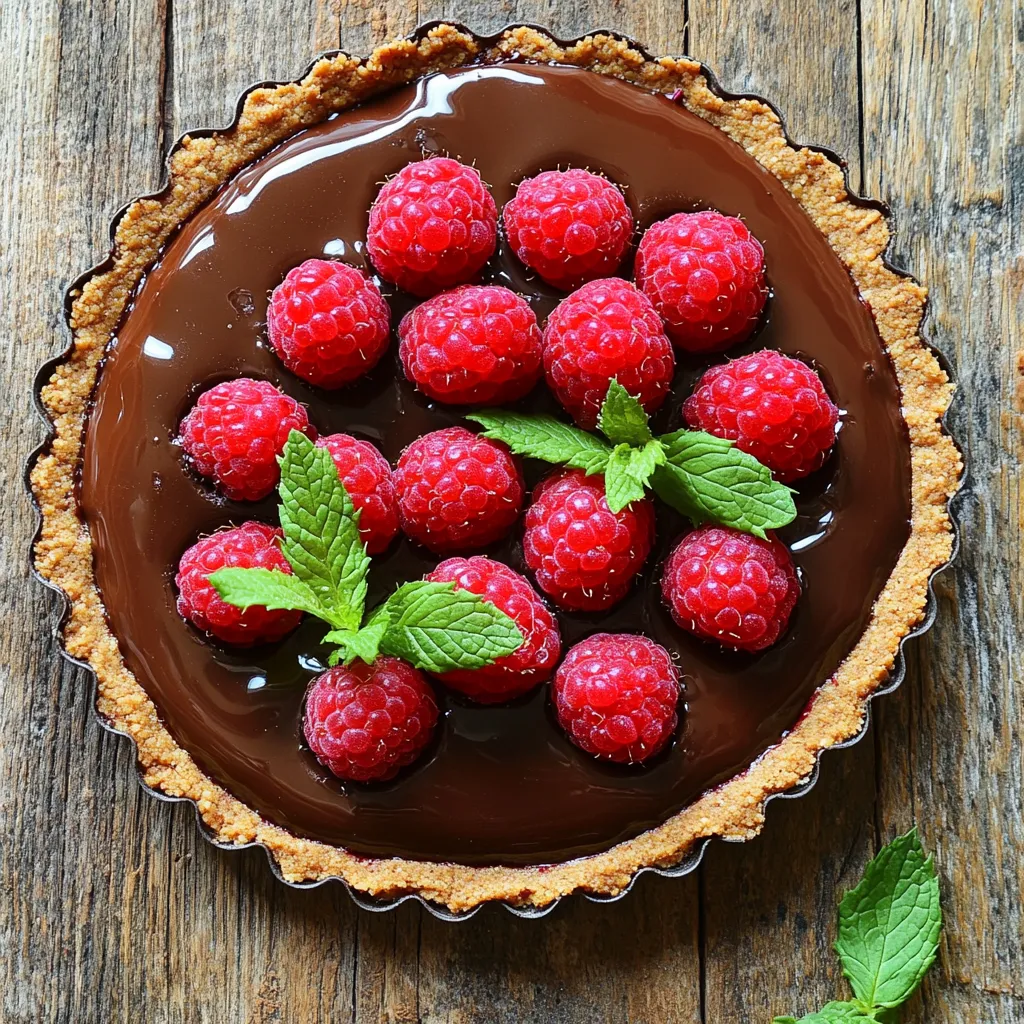 Garnish your tart for a stunning look. Dust the top with cocoa powder for a rich touch. Add fresh mint leaves for color and freshness. You can also try other toppings. Consider using whipped cream, nuts, or more berries for a fun twist. Feel free to get creative with your presentation!