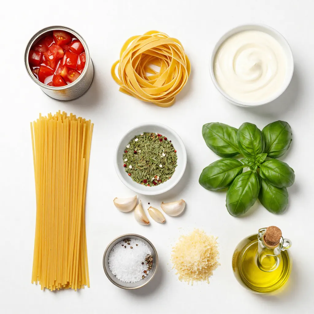 The main ingredients make this dish hearty and comforting. The pasta absorbs all the lovely flavors. The diced tomatoes add sweetness and acidity. The broth helps create a savory base. You can pick spaghetti or fettuccine based on your mood. Both work well to soak up the sauce.