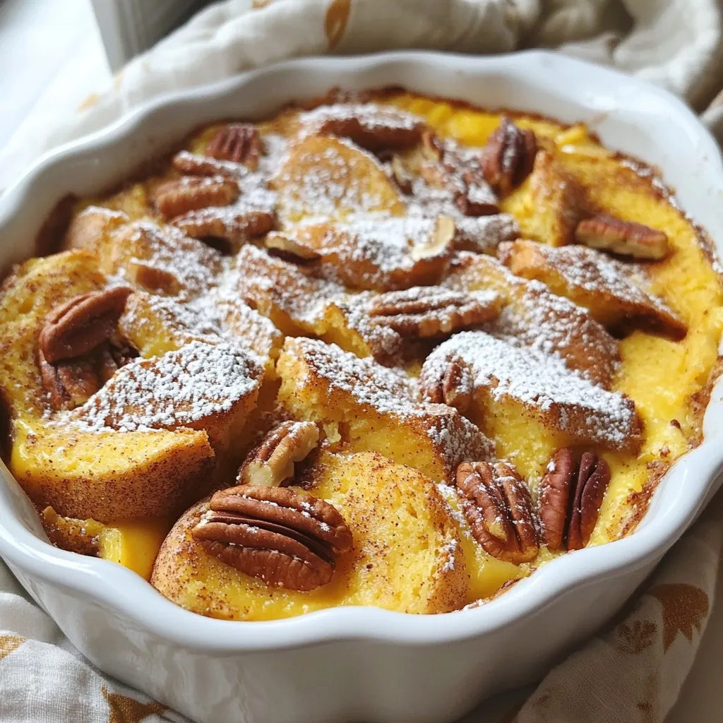 To get a creamy texture, mix your wet ingredients well. Combine pumpkin puree, eggs, milk, and cream in a bowl. Whisk until smooth. Let the bread soak in this mixture. Aim for 15-20 minutes for the best results. Stir the bread gently to coat each piece. This helps absorb all the flavors.
