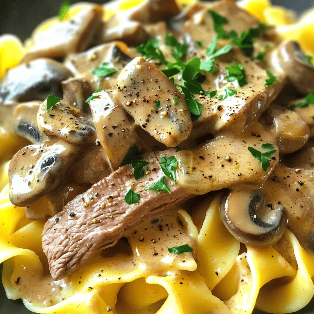 - Presentation Tips: Serve the creamy beef stroganoff over a bed of egg noodles or rice. Garnish with freshly chopped parsley for an inviting color contrast. Add a sprinkle of cracked black pepper for an extra touch of flavor.