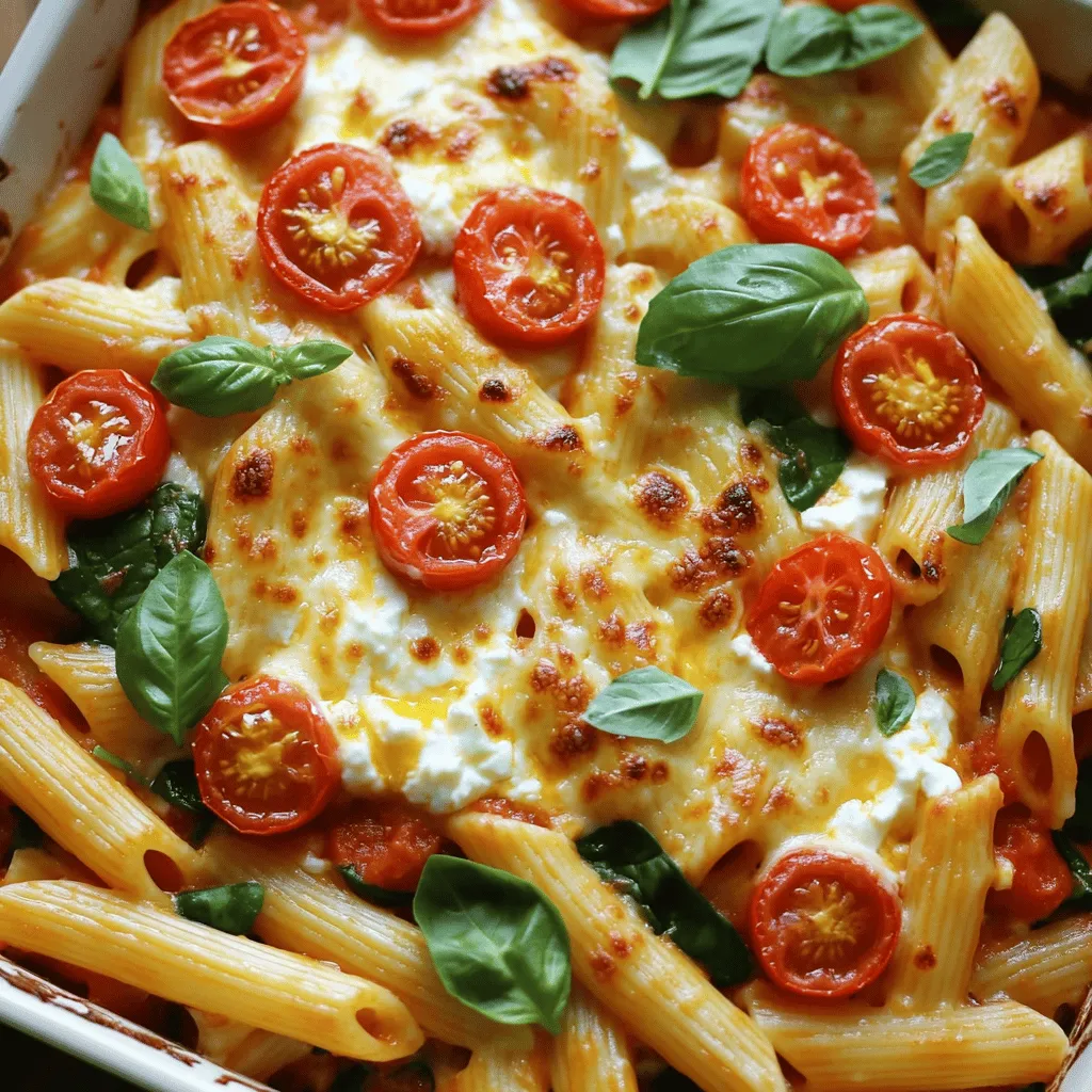 For the Roasted Red Pepper Feta Pasta Bake, I love to use fresh ingredients. The penne pasta serves as a perfect base, holding the sauce well. Roasted red peppers add a sweet, smoky flavor. Feta cheese brings a creamy, tangy note that pairs beautifully with the tomatoes.