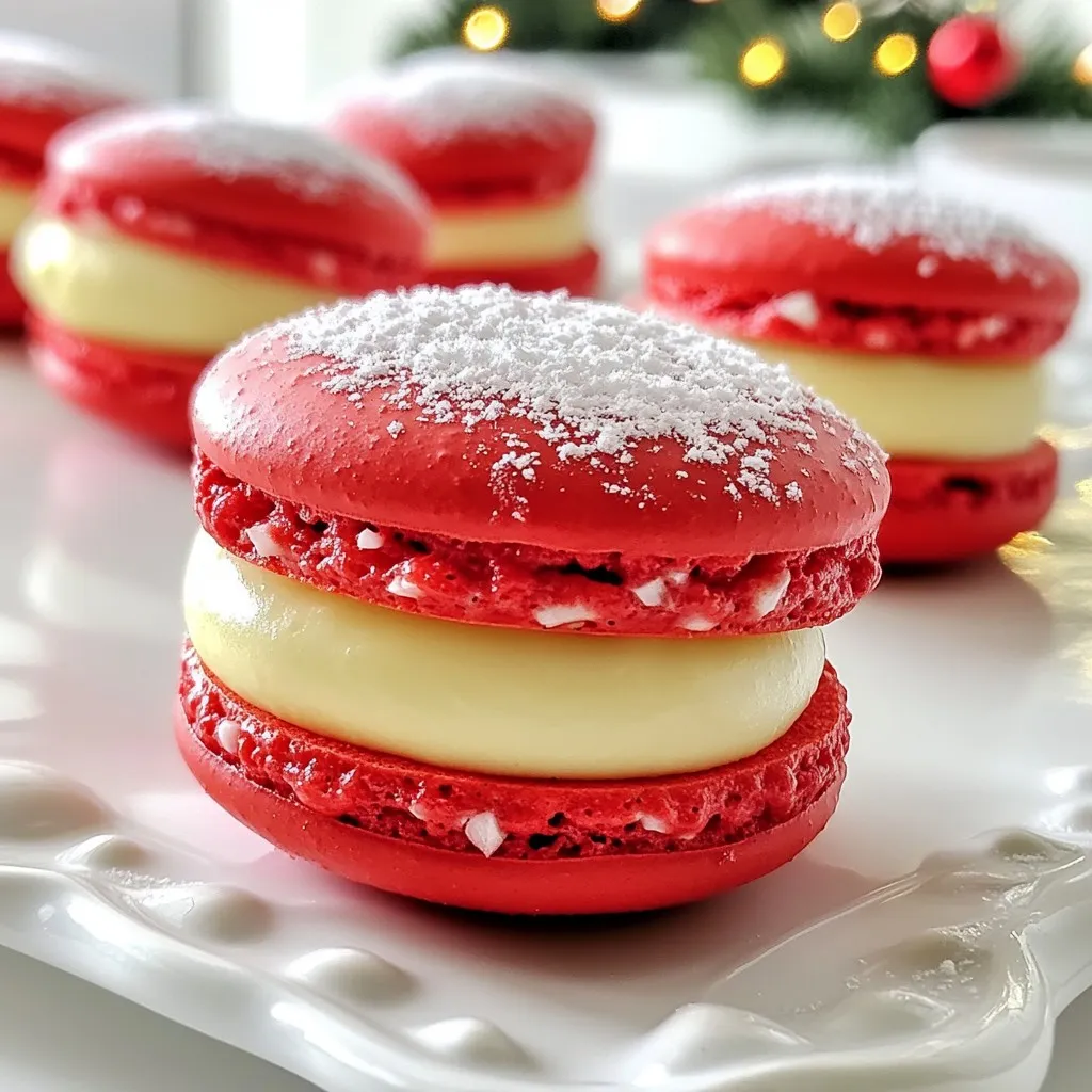 The fun part of making these macarons is decorating them! Use edible glitter for a sparkling look. You can also pipe little Santa faces with white and black icing. This makes them even more festive. For a simpler touch, sprinkle colored sugar on top before baking. It adds a nice crunch and a pop of color.