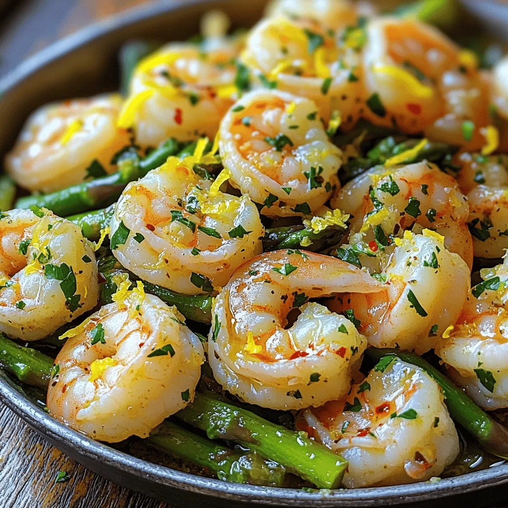 Serving matters, especially with a dish like this. Use a large platter for a beautiful display. Lay the shrimp and asparagus in a colorful pattern. Garnish with freshly chopped parsley for a pop of green. You can also add lemon wedges on the side. This adds color and lets guests add more lemon if they want. A nice touch can make your meal look gourmet!