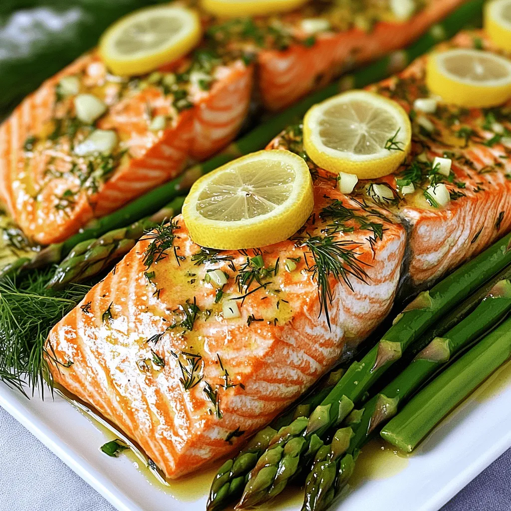 How you present your dish can make it shine. I suggest garnishing with extra lemon slices and a sprinkle of fresh herbs. This adds color and freshness. For serving, a clean white platter showcases the bright colors of the salmon and asparagus beautifully.