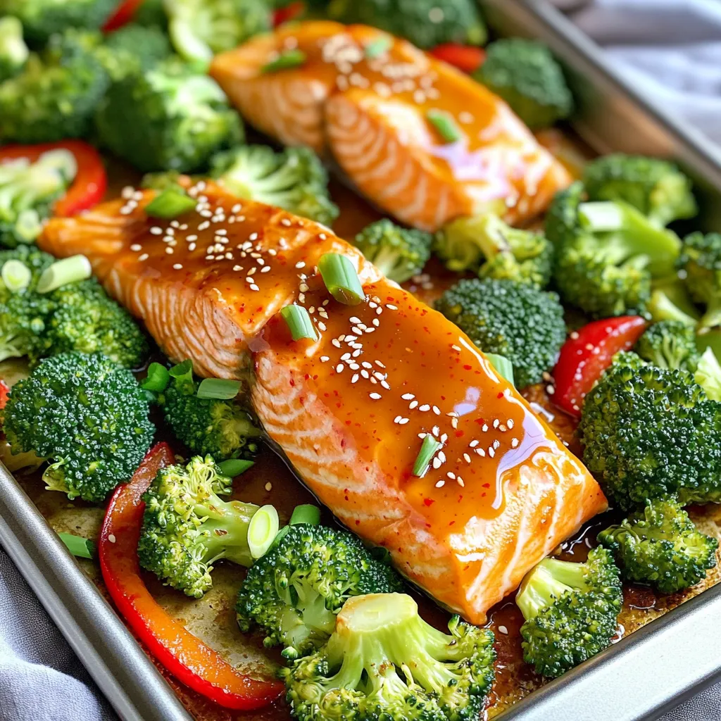 You can prepare the salmon and vegetables ahead of time. Marinate the salmon in the sweet chili sauce overnight. This helps the flavors soak in. Cut the broccoli and bell pepper a day before too. Store them in the fridge until you’re ready to cook. When you’re ready to eat, just follow the baking steps. This makes dinner quick and easy. You can also pack leftovers for lunch. It tastes great cold or reheated!