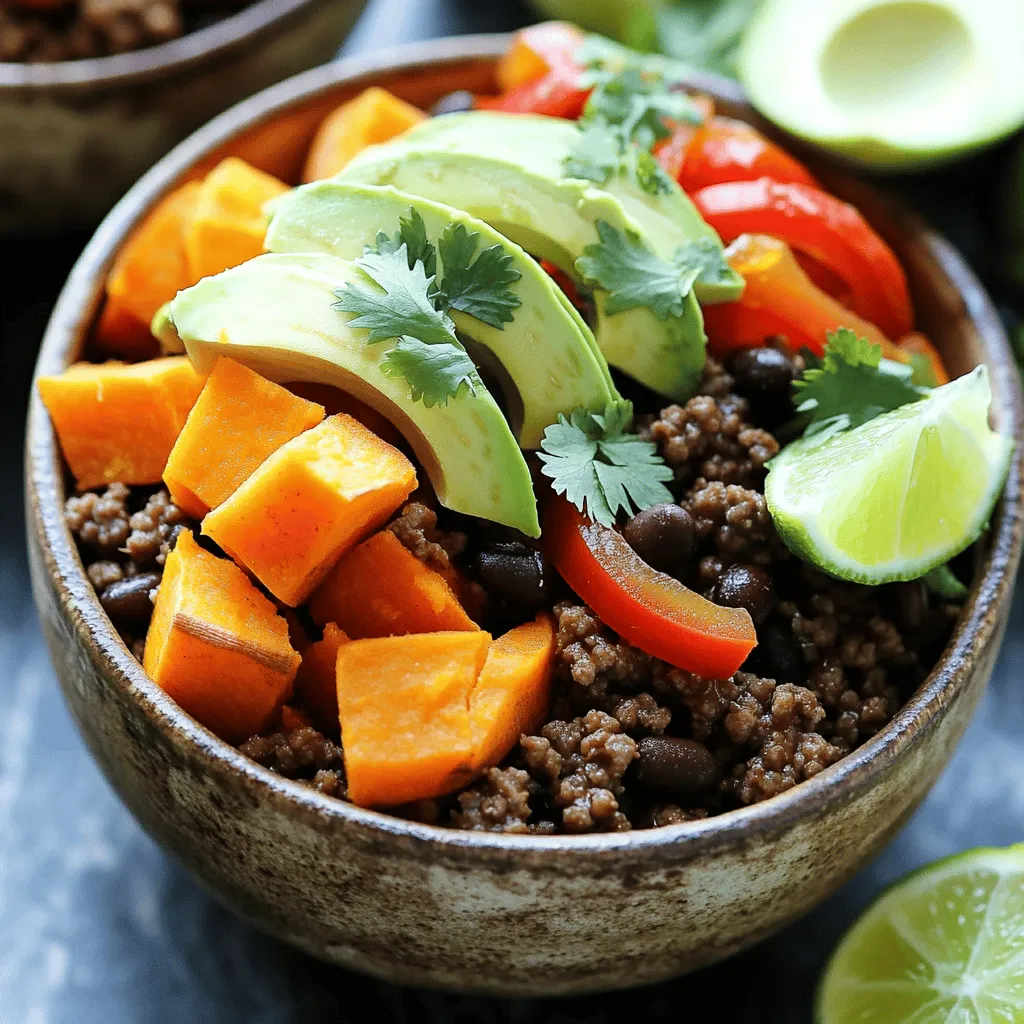 Get creative with how you serve your bowls! For a burrito bowl, add rice or quinoa at the base. Top it with the beef and sweet potato mix, and don’t forget the avocado and cilantro. If you prefer a lighter meal, try a salad bowl. Start with mixed greens, then pile on the beef, sweet potatoes, and veggies. This way, you enjoy a fresh crunch with every bite.