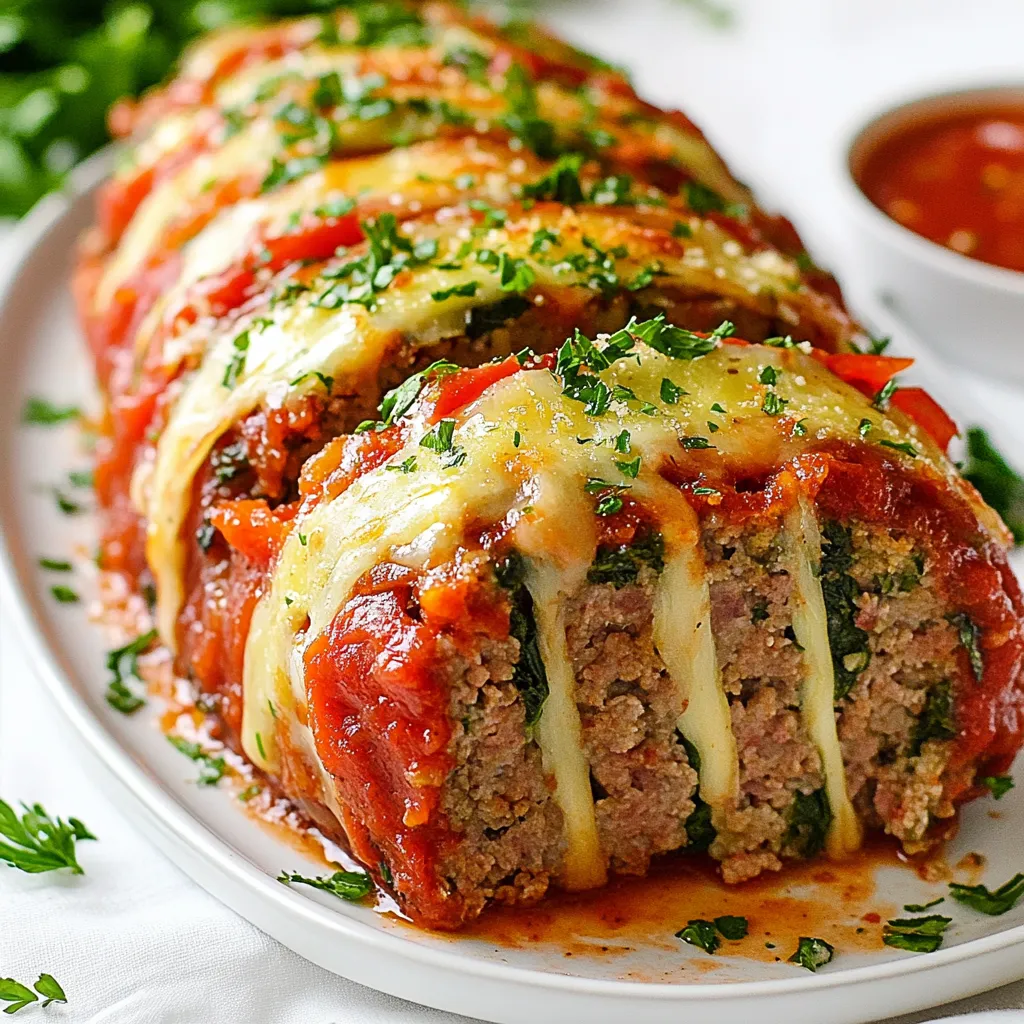 When slicing, use a sharp knife. This keeps the loaf intact and neat. I like to serve slices on a big platter. Drizzle extra marinara sauce on top. Garnishing with fresh parsley makes it look fancy. For sides, consider garlic bread or a simple salad. Both pair well and round out the meal nicely.