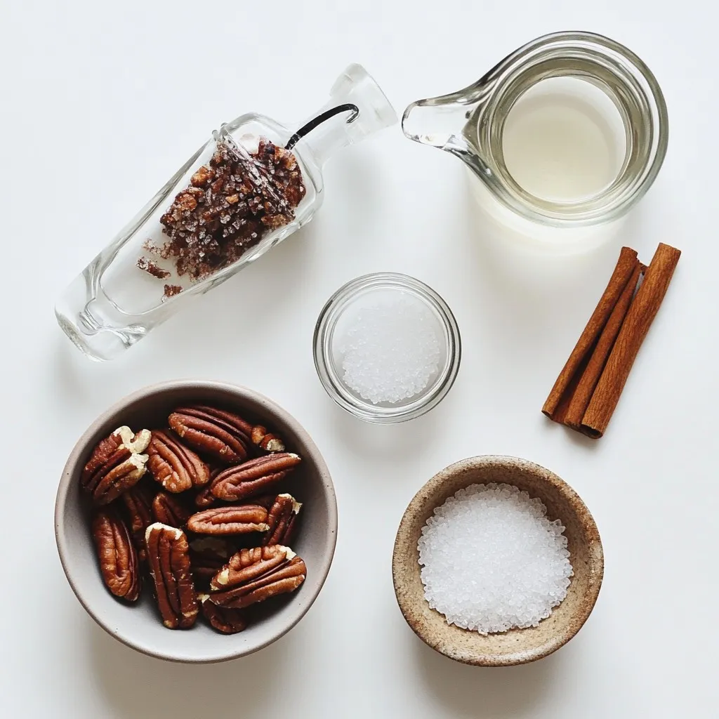 These simple ingredients make a tasty treat. You only need raw pecans and a few pantry staples. The sugar and water create a sweet syrup that binds to the nuts. The vanilla adds depth, while cinnamon gives warmth. The salt brings out all the flavors.