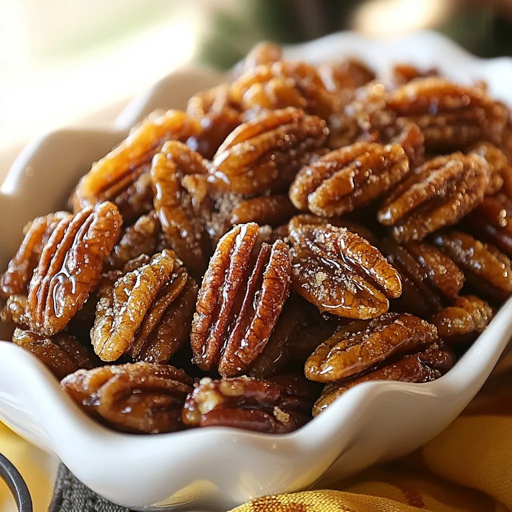 Candied pecans are great for many occasions. Serve them in a nice bowl at parties. They make a sweet snack for movie night too.