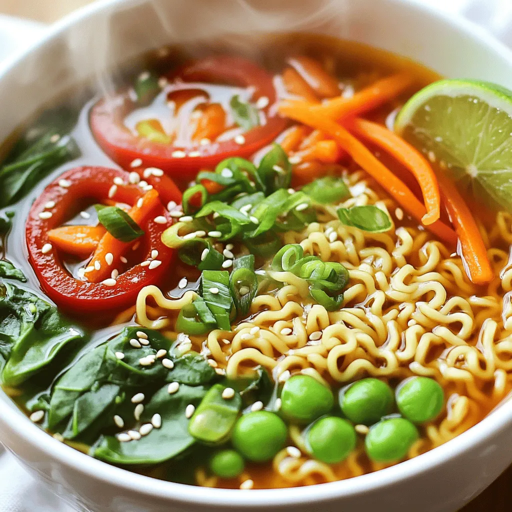 Serve your ramen in deep bowls for a cozy look. Ladle the broth over the noodles and veggies carefully. This helps keep the noodles from breaking. Top each bowl with green onions and sesame seeds. A lime wedge on the side adds a fresh touch. For extra flair, sprinkle chili flakes on top. This makes the dish look inviting and adds a pop of color!
