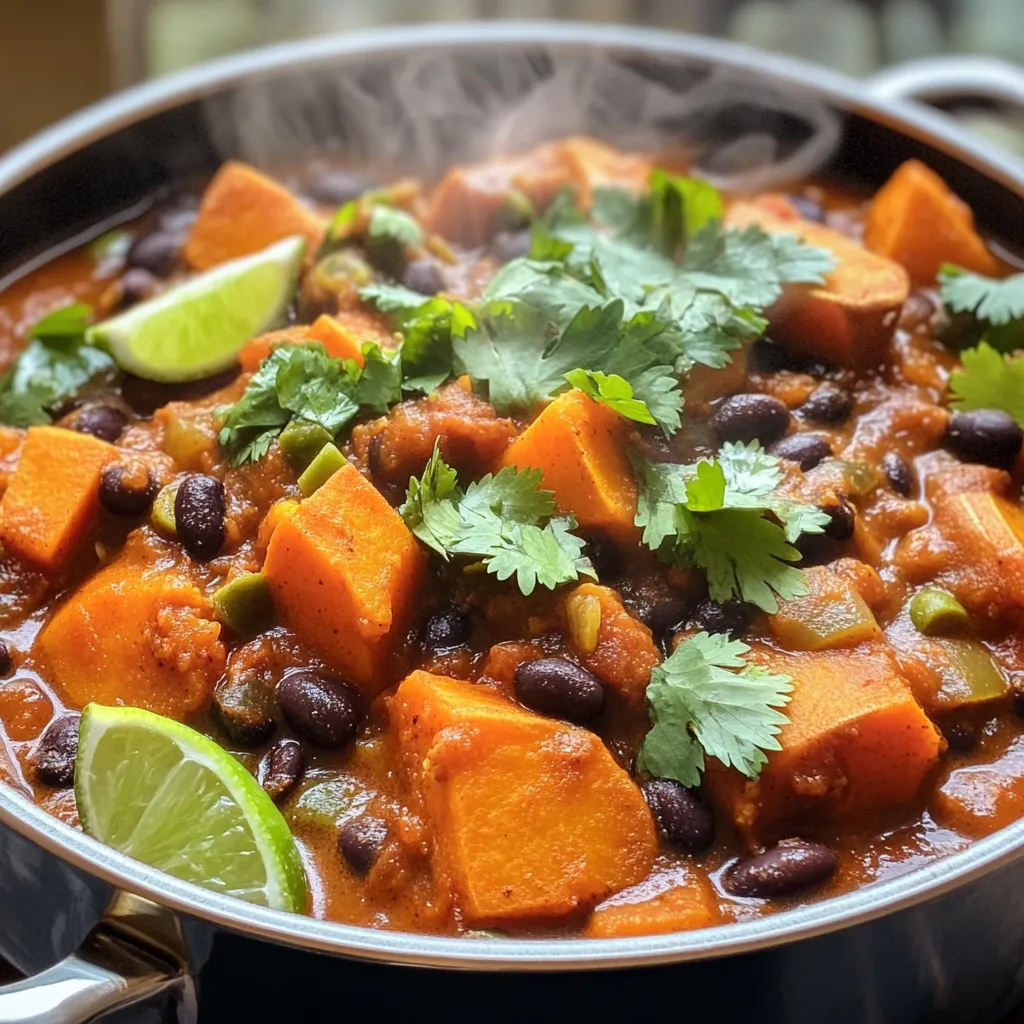 This recipe is already vegan! All the ingredients are plant-based. Sweet potatoes and black beans provide protein and nutrients. The spices add flavor without any animal products. If you want to add a topping, use avocado or cashew cream for a creamy touch. Enjoy your delicious and wholesome vegan chili!