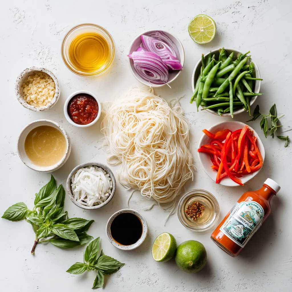 - Cook the rice noodles according to package instructions, drain, and set aside.