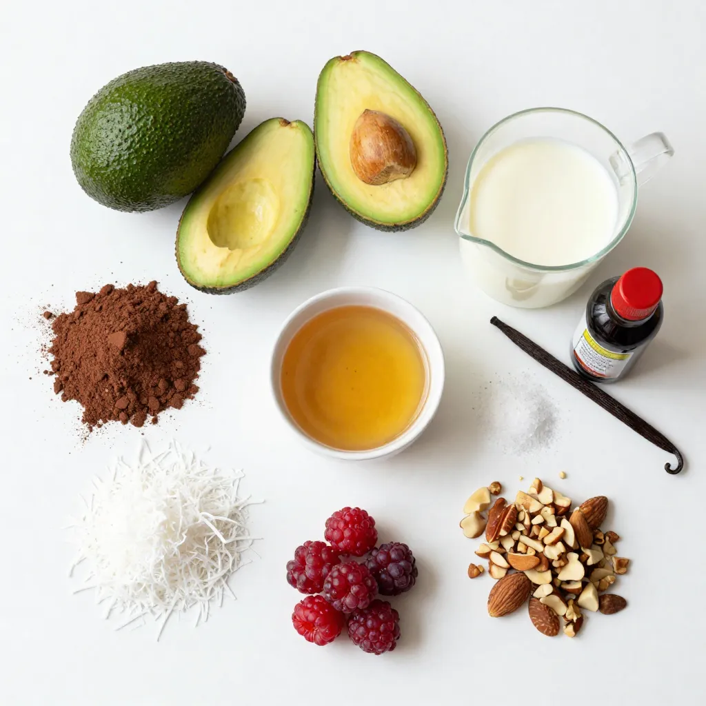 The main ingredients create the base of your mousse. Ripe avocados give a creamy texture and rich flavor. Unsweetened cocoa powder adds deep chocolate taste without extra sugar. Maple syrup or agave syrup sweetens the mix naturally. Almond milk keeps it light, while coconut milk adds extra creaminess.